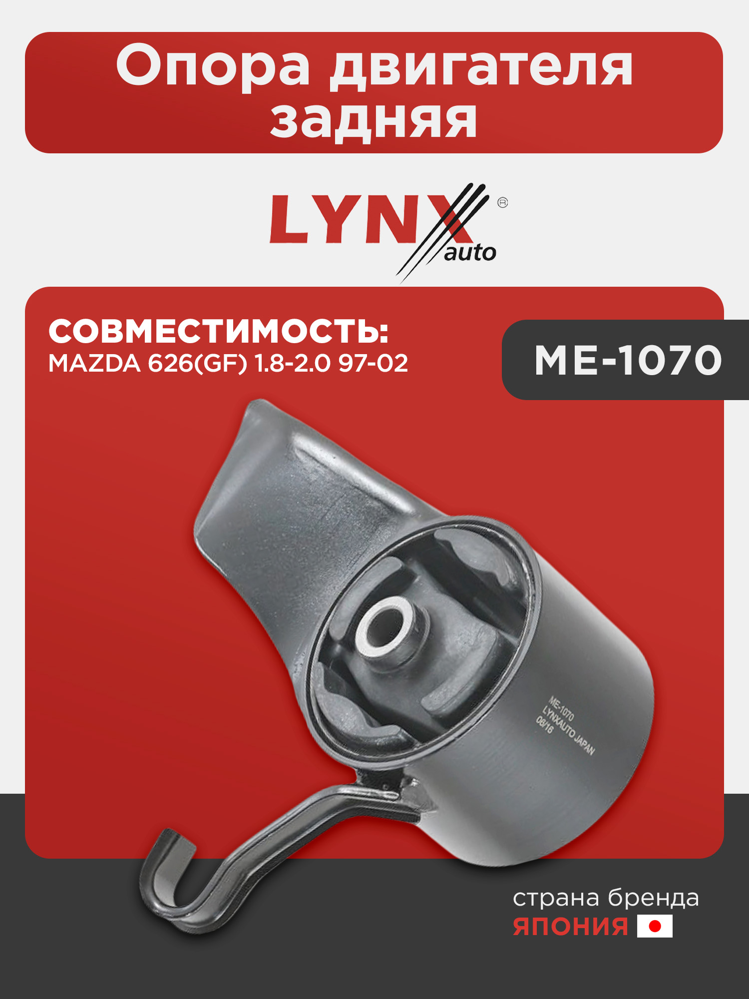 Опора двигателя задняя LYNXauto ME-1070. Для: MAZDA 626(GF) 1.8-2.0 97-02