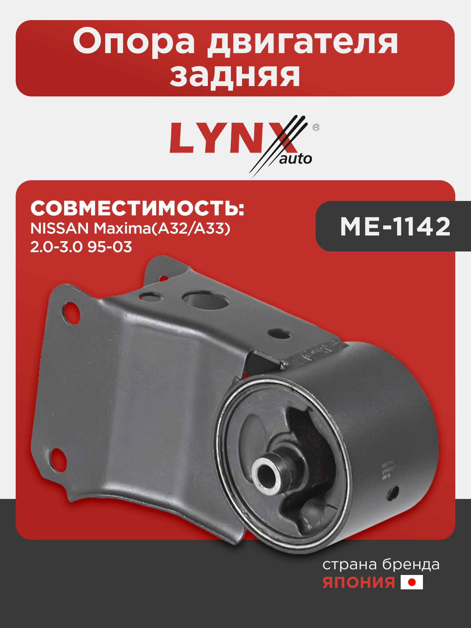 Опора двигателя задняя LYNXauto ME-1142. Для: NISSAN НИССАН Maxima(A32/A33) 2.0-3.0 95-03