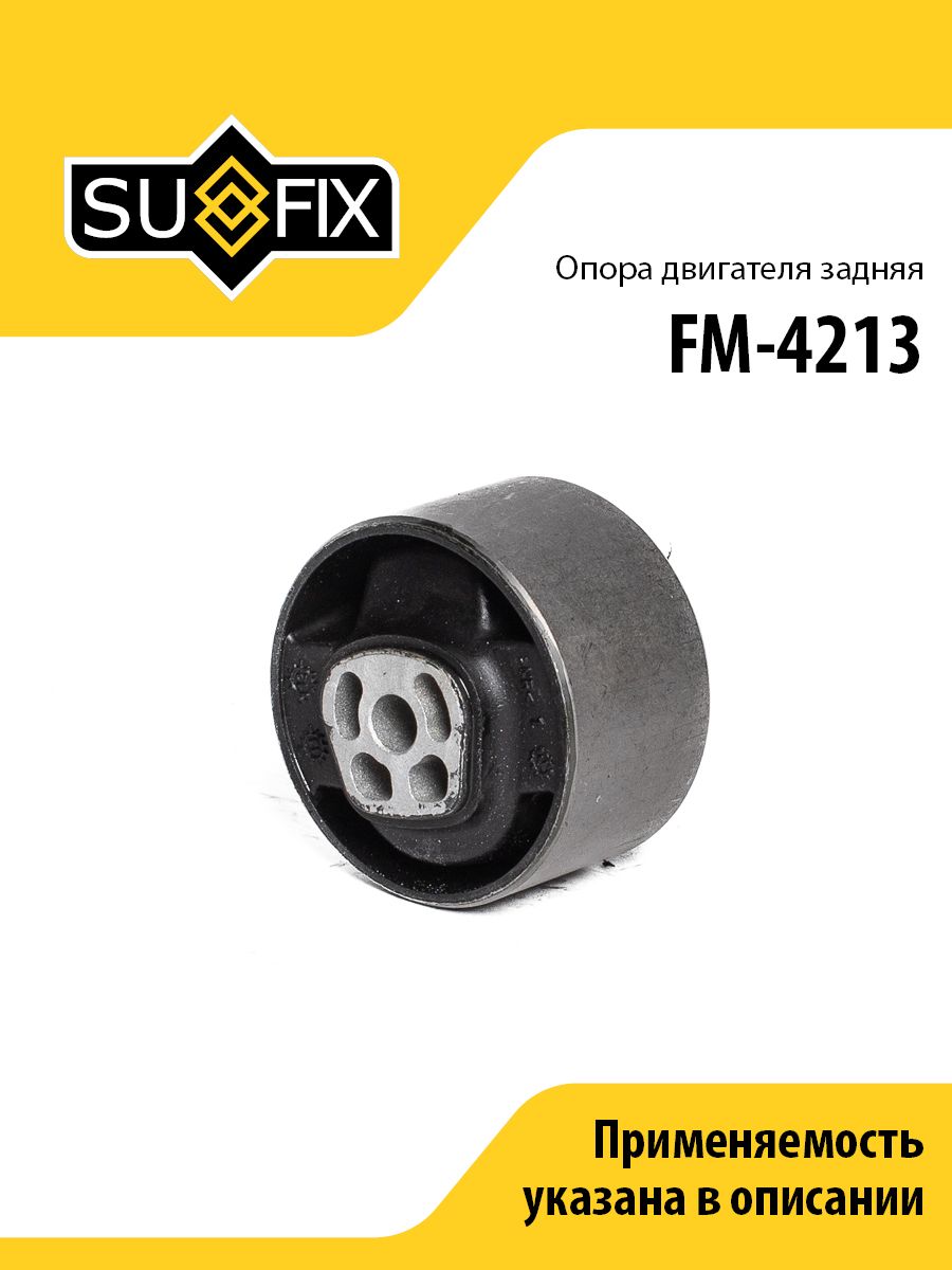 Опора двигателя задняя SUFIX FM-4213. Применение: CITROEN Berlingo(B9 / MF) 1.6D 08> / C4 I-II 1.6-2.0 04> / C5 II-III 1.6 04>, PEUGEOT 3008 1.6-1.6D 09> / 307 1.6D-2.0 00-08 / 308 1.4-1.6D 07-13 / 406 2.0D-2.2D 95-04 / 607 2.0D-2.2 00-10 / Partner II 1.6D 08>.