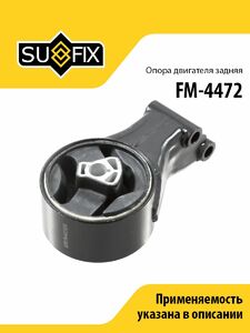 Опора двигателя задняя SUFIX FM-4472. Применение: CHEVROLET Cruze 1.6-2.0D 09> / Orlando 1.4-2.0D 11>, OPEL Astra J 1.4-2.0D 09> / Zafira C 1.4-2.0D 11>.