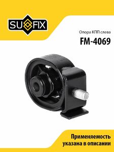 Опора КПП L SUFIX FM-4069. Применение: MITSUBISHI L200(K7/K6) 2.4-3.0 96> / Pajero II 2.8D-3.5 90> / Pajero Sport I 2.5D-3.0 98>.
