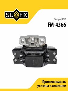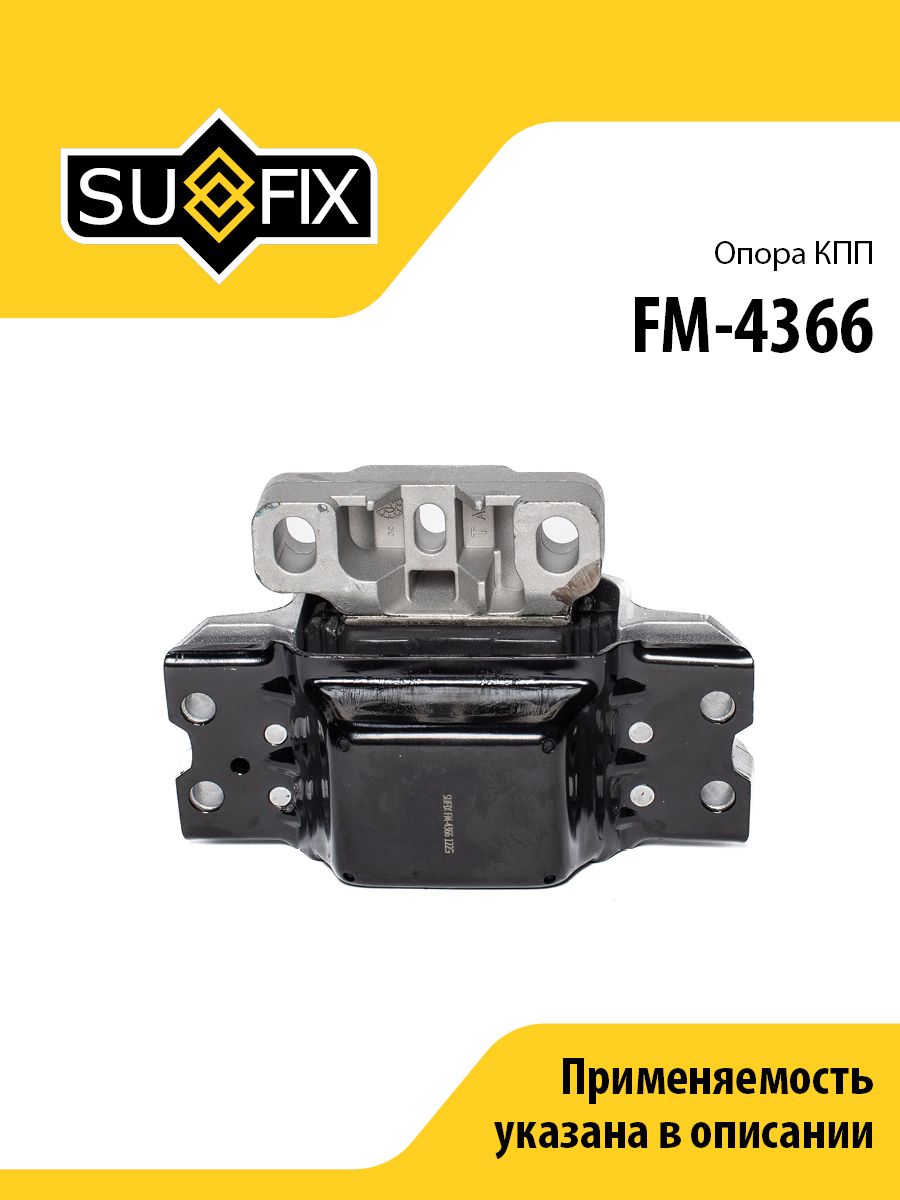 Опора КПП SUFIX FM-4366. Применение: AUDI A3 1.4 07-13, VW EOS 1.4 08-15 / Golf Plus 1.4 06-13 / Golf V-VI 1.4 05-12 / Jetta III 1.4 09-10 / Scirocco 1.4 09-11 TOURAN 1.4 06-10.