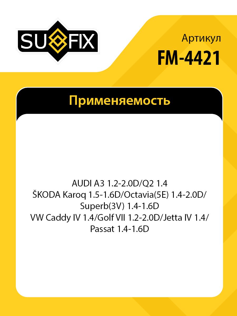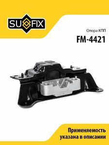Опора КПП SUFIX FM-4421. Применение: AUDI A3 1.2-2.0D 12> / Q2 1.4 16>, SKODA Karoq 1.5-1.6D 17> / Octavia(5E) 1.4-2.0D 12> / Superb(3V) 1.4-1.6D 15>, VW Caddy IV 1.4 15> / Golf VII 1.2-2.0D 12> / Jetta IV 1.4 17> / Passat 1.4-1.6D 14>.