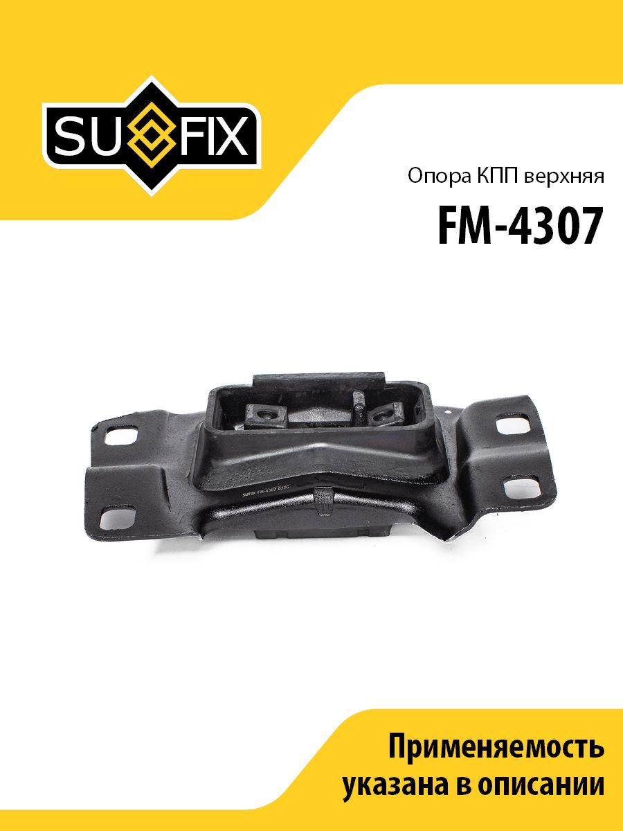 Опора КПП верхняя SUFIX FM-4307. Применение: FORD Focus III 1.0-2.0 04> / C-Max 1.6-2.0D 03> / Fiesta VI 1.4-1.6 08> / Kuga I-II 1.6-2.5 08> / Tourneo Connect 1.0-1.6D 13> / Transit Connect 1.0-1.6D 13, VOLVO C30 1.6D-2.0 06-12 / S40 II 1.6-2.5T 04>.