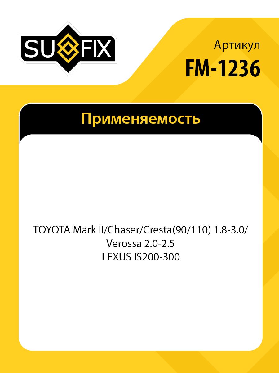 Опора переднего амортизатора SUFIX FM-1236. Применение: TOYOTA Mark II/Chaser/Cresta(90 / 110) 1.8-3.0 92-07 / Verossa 2.0-2.5 01-04, LEXUS IS200-300 99-05.