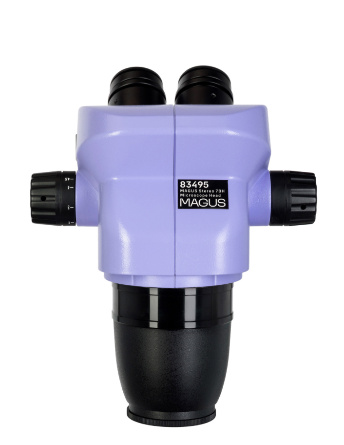 Объектив плавно изменяет увеличение в 6,7 раз без потери фокуса. Оптическая система формирует прямое (неперевернутое) объемное изображение. Дополнительные насадки на объектив изменяют диапазон увеличения, поле зрения и рабочее расстояние микроскопа.