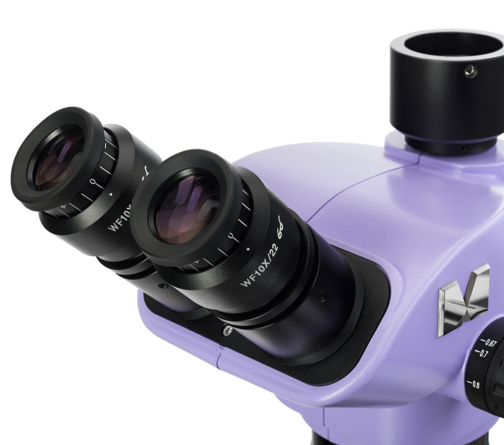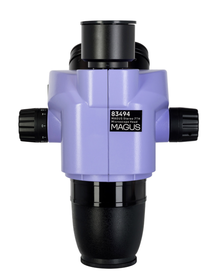 Объектив плавно изменяет увеличение в 6,7 раз без потери фокуса. Оптическая система формирует прямое (неперевернутое) объемное изображение. Дополнительные насадки на объектив изменяют диапазон увеличения, поле зрения и рабочее расстояние микроскопа.