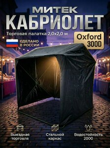 Палатка Кабриолет имеет 3 стенки и крышу с козырьком. Она идеально подходит для уличной торговли продуктами, цветами и промышленными товарами.