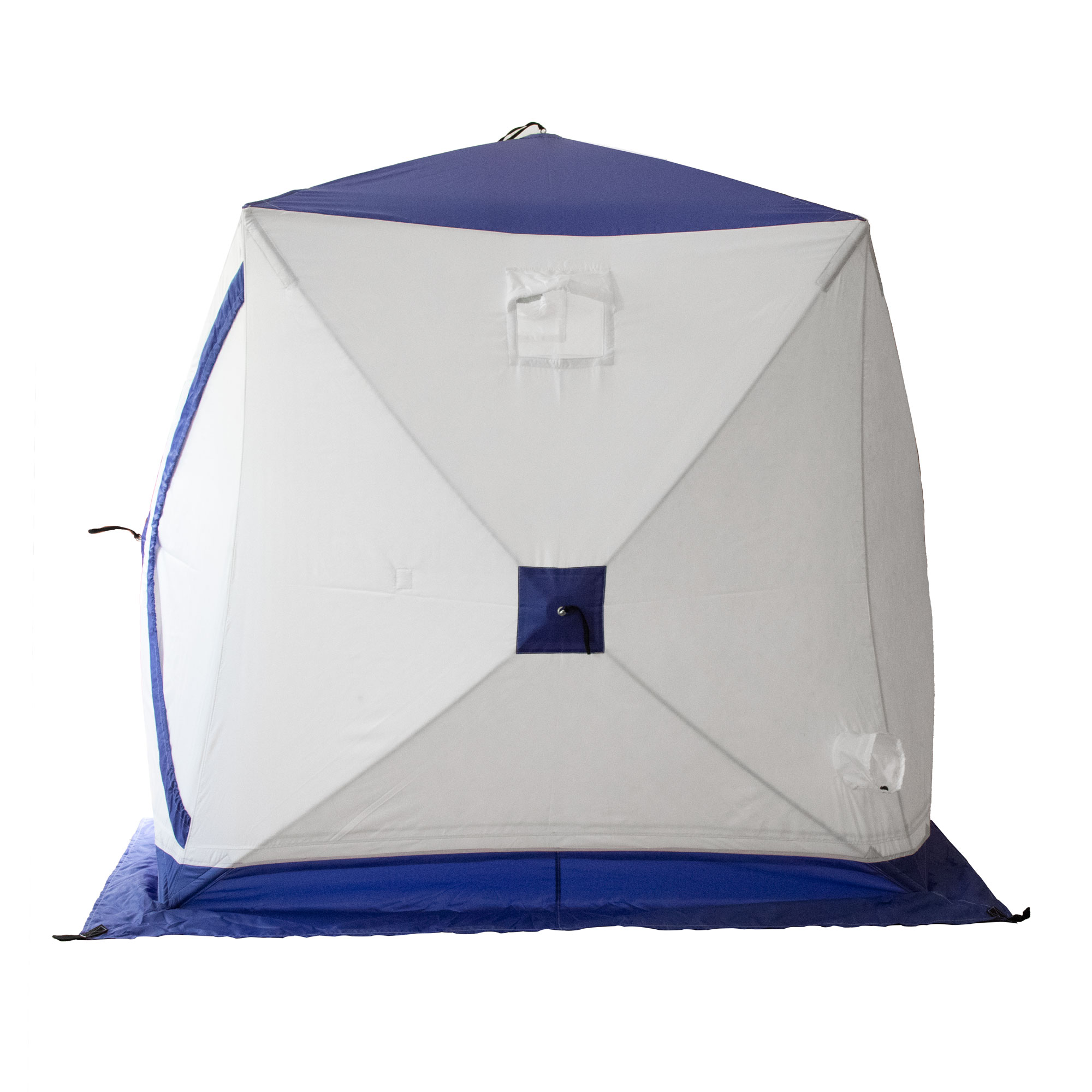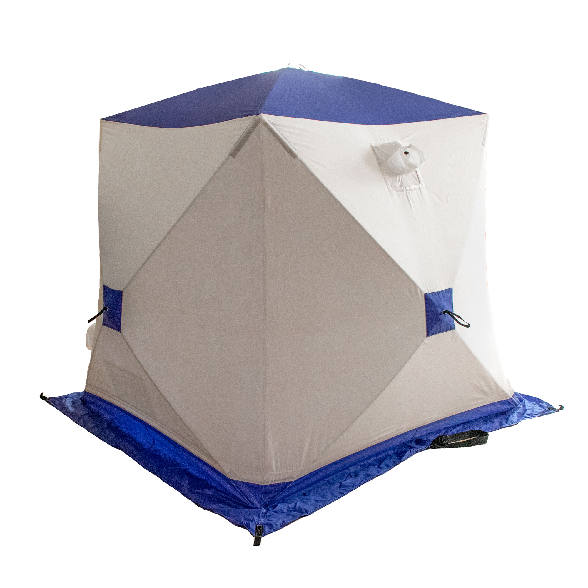 Палатка зимняя куб СЛЕДОПЫТ, 1,75х1,75, h-1,75м, S по полу 3,1 кв.м, 3 слоя, цвет синий/белый