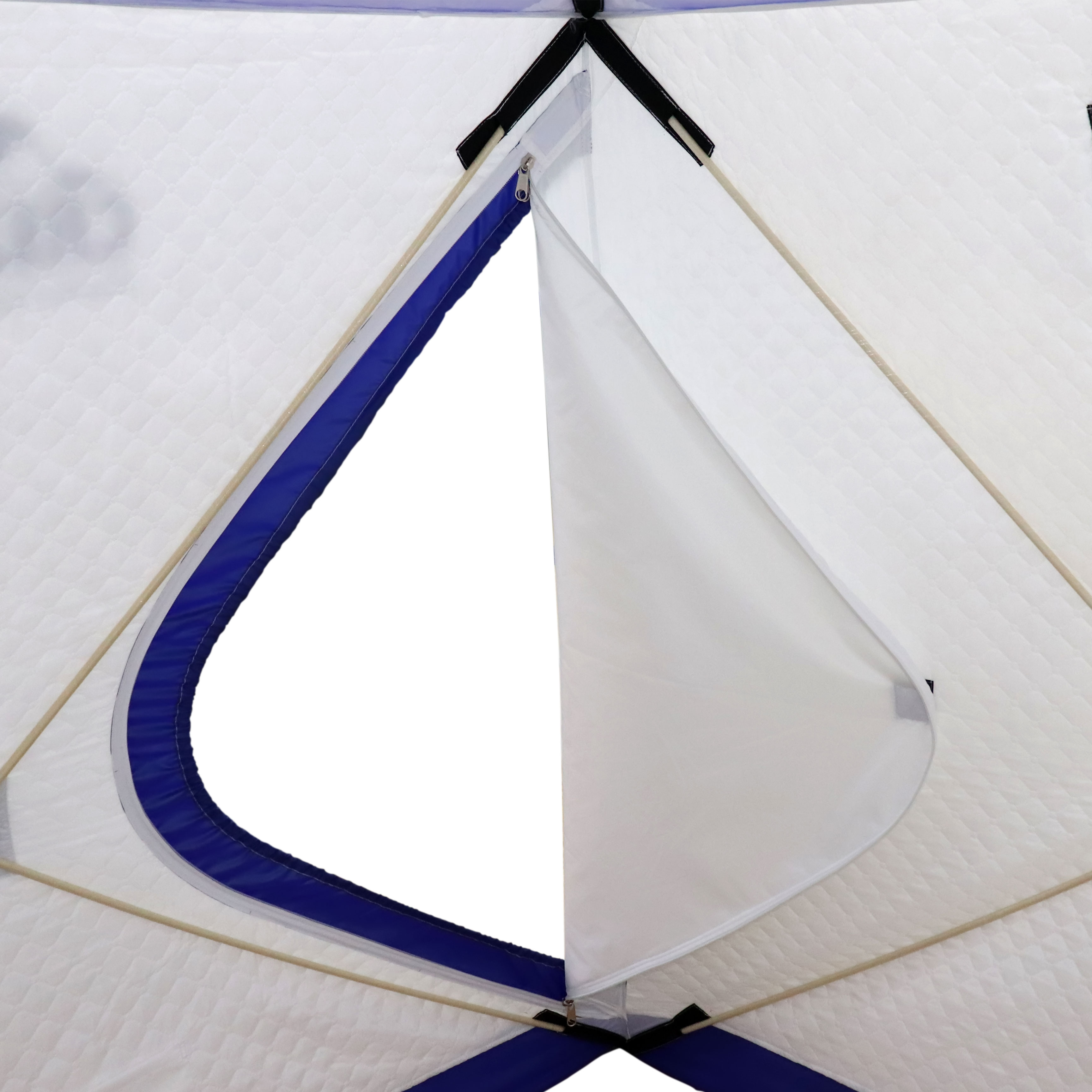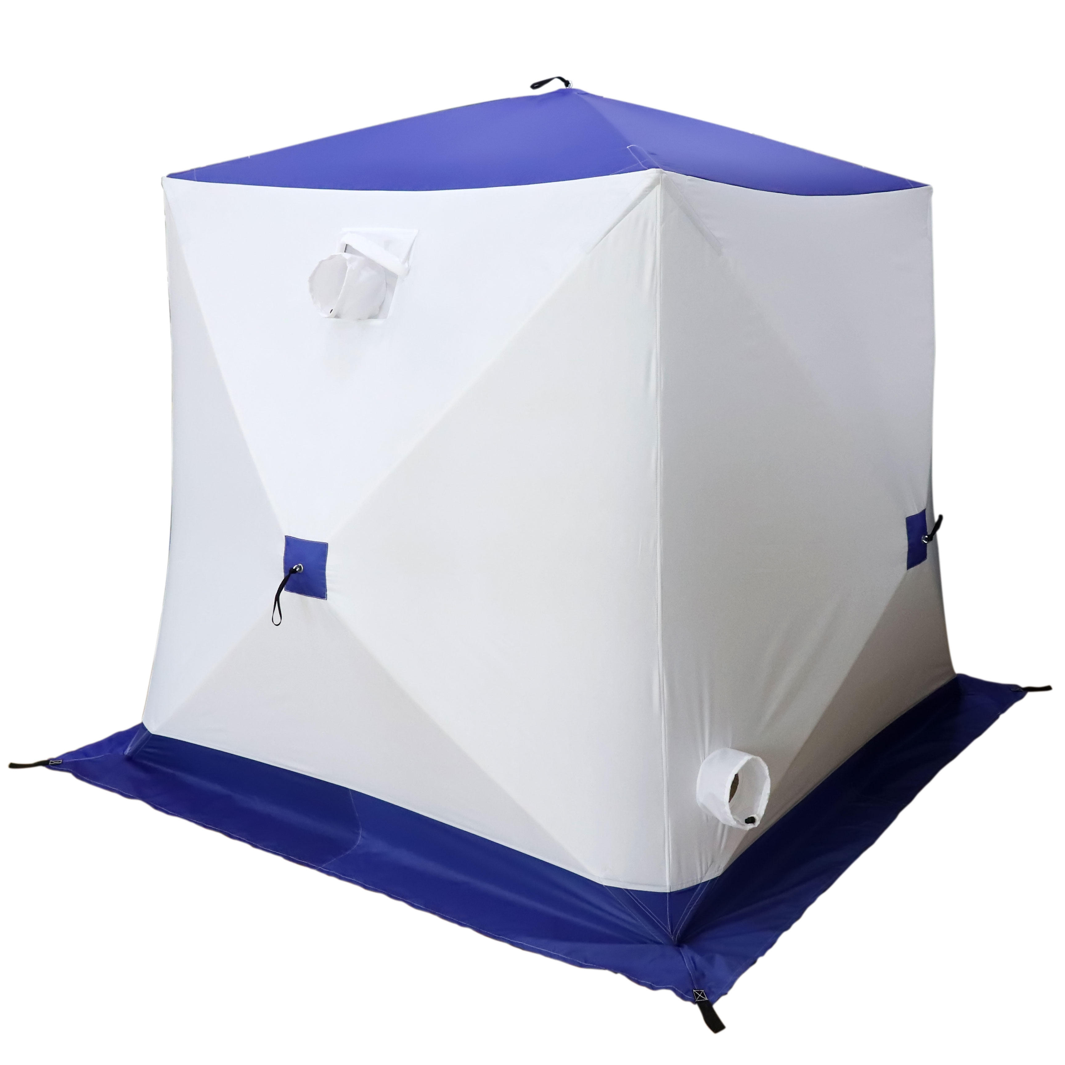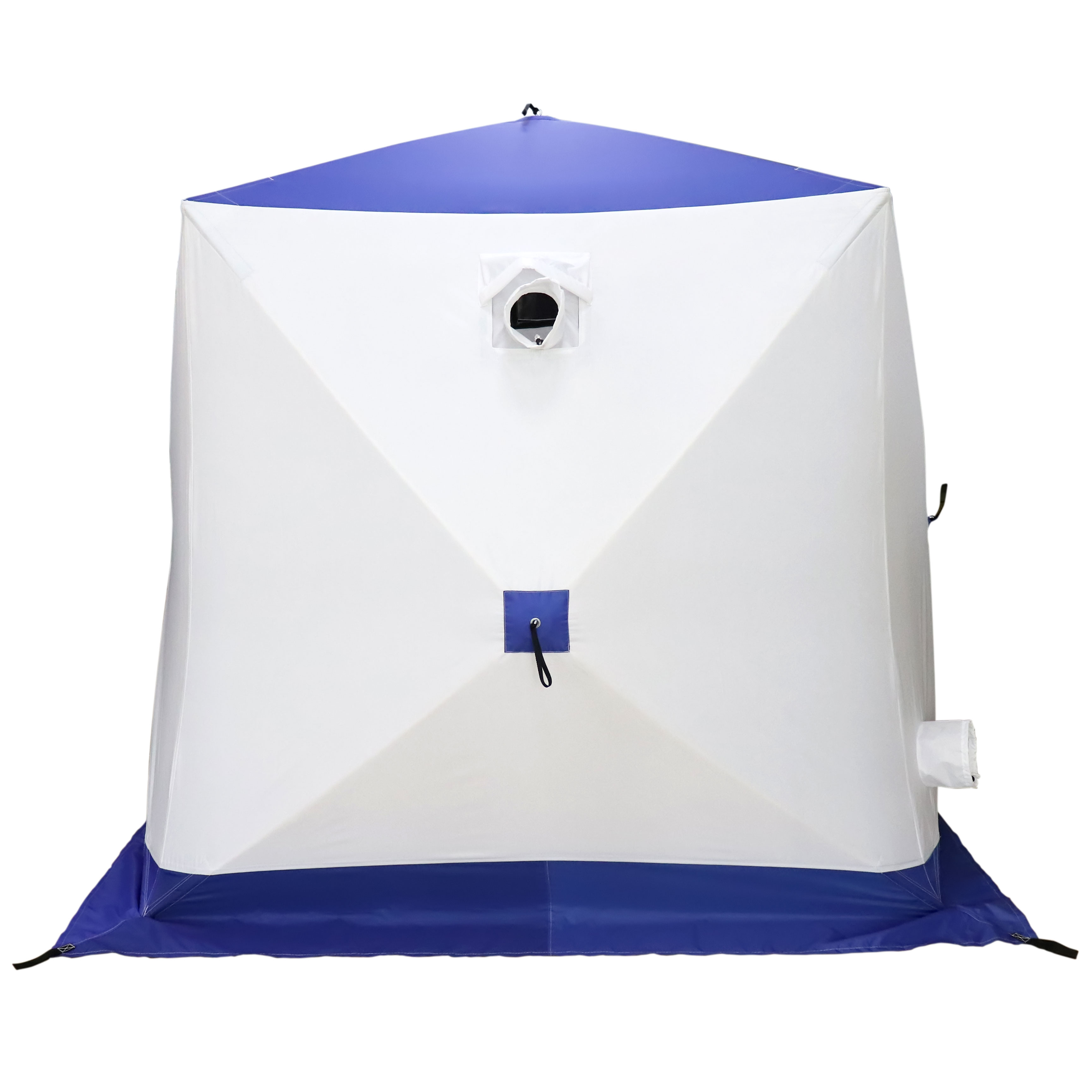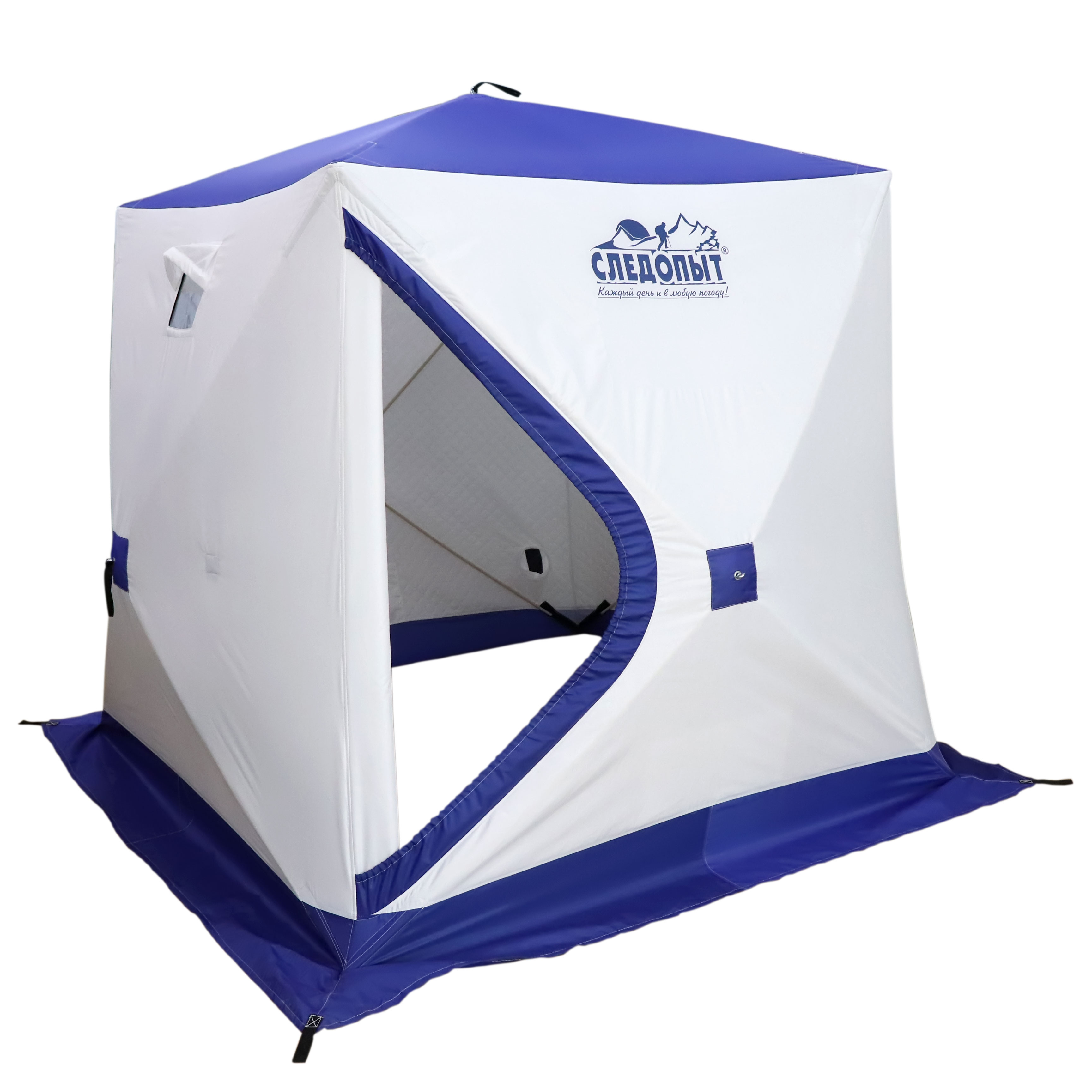 Палатка зимняя куб СЛЕДОПЫТ, 1,9х1,9, h-2,05 м, S по полу 3,6 кв.м, 3 слоя, цвет синий/белый