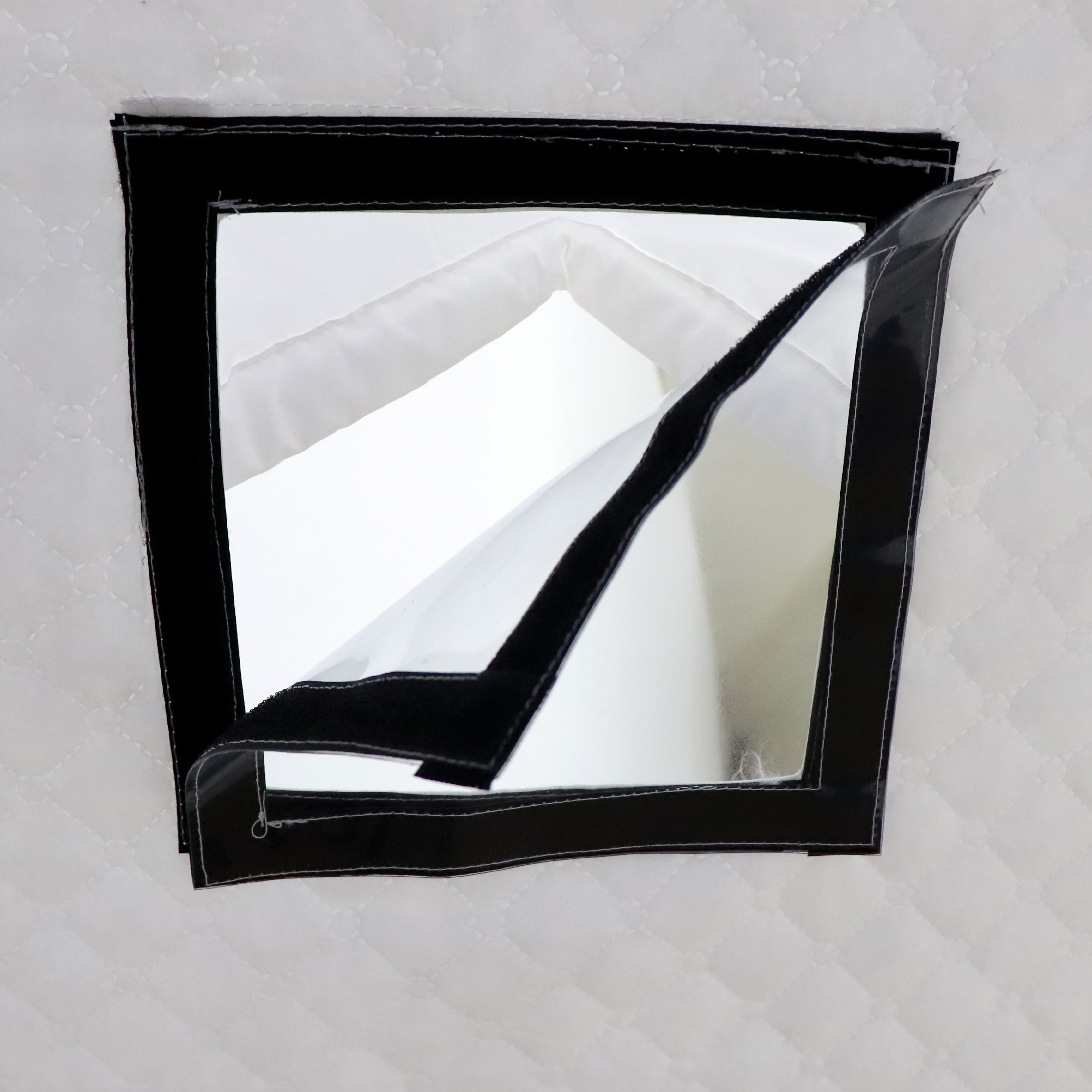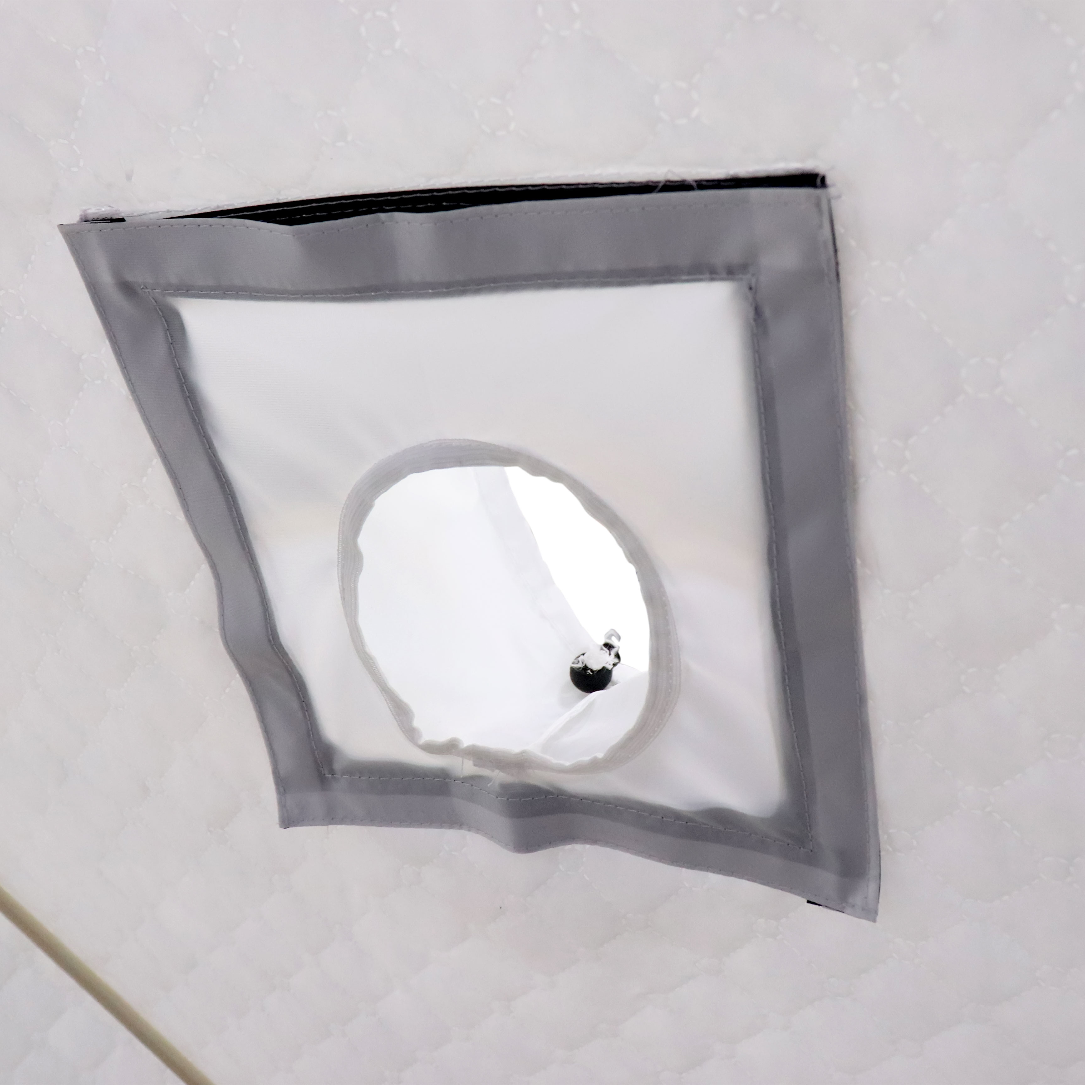 Зимняя палатка «Следопыт «Куб» обеспечивает комфорт на рыбалке в зимнее время года. Благодаря системе крепления дуг «хабы» палатки очень быстро переводятся из транспортного положения в рабочее состояние. «Хаб» выполнен из морозостойкого, ударопрочного материала - нейлона (полиамида). Разложить палатку удается всего за несколько минут. Каркас изготовлен из прочного стеклопластикового прутка d 10 мм. В качестве материала для тента использована надежная ткань Oxford 210D PU1000, она дублируется с подкладочной тканью «термостежка», подкладка 190Т с синтепоном 80 г/кв.м. Такой материал отличается высокой мягкостью, прочностью, а также долго удерживает тепло. В нижней части к тенту пришита внешняя юбка. Внутри палатки предусмотрены карманы для хранения рыболовных мелочей. Для хорошего освещения внутреннего пространства в тент встроены окна, которые выполнены из прозрачной пленки ПВХ 500мк. А для создания комфортного микроклимата внутри закрытой палатки имеется вытяжной клапан.