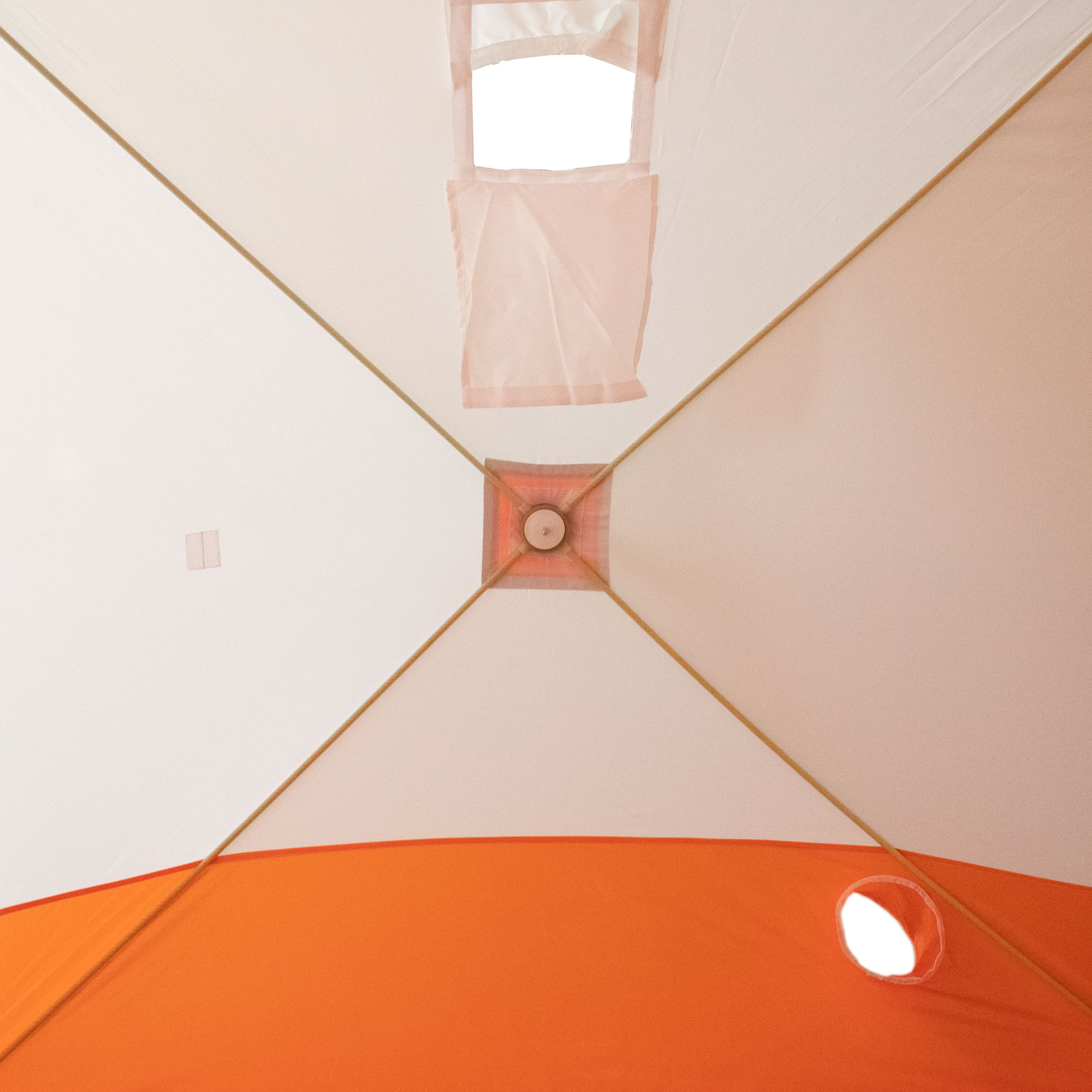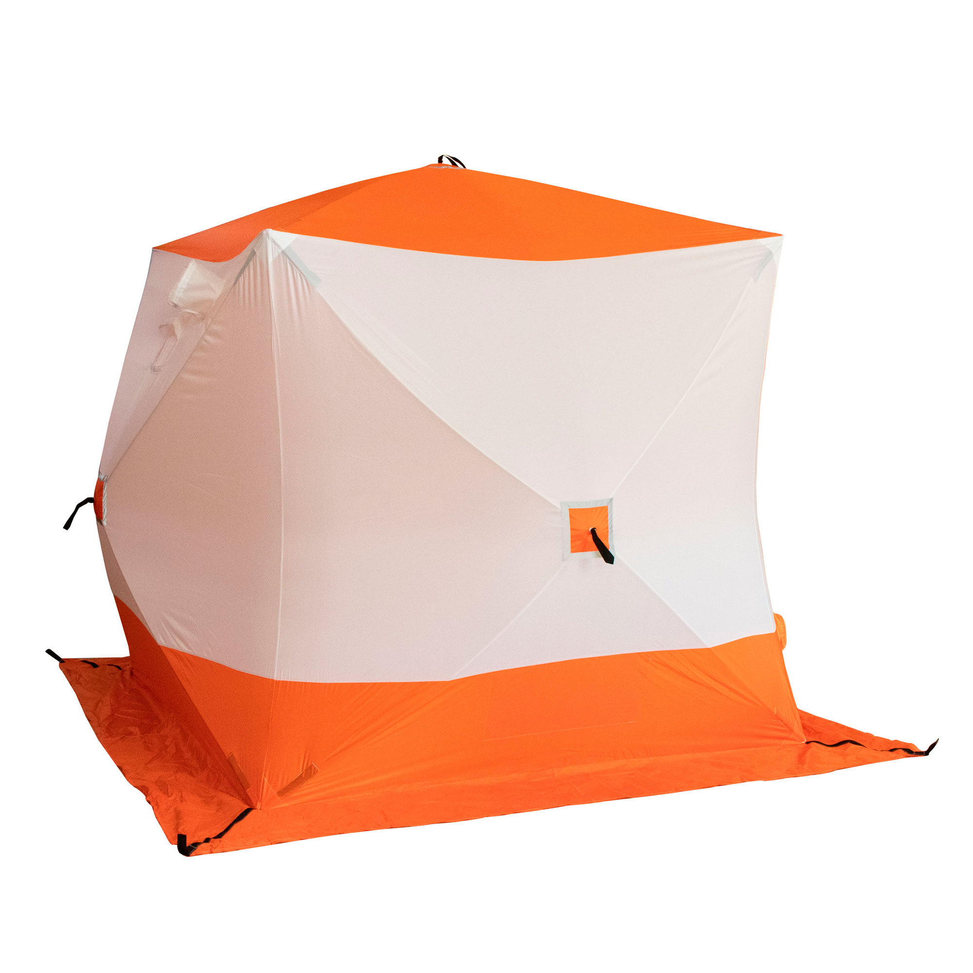 Палатка зимняя куб СЛЕДОПЫТ 2,1 х2,1 м, Oxford 210D PU 1000, S по полу 4,4 кв.м, цвет оранжевый/белый