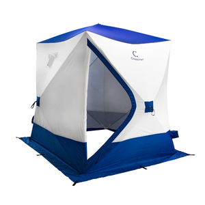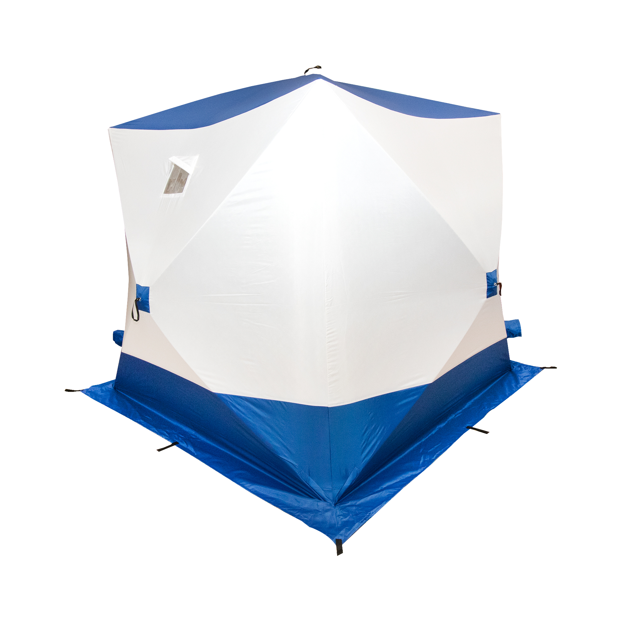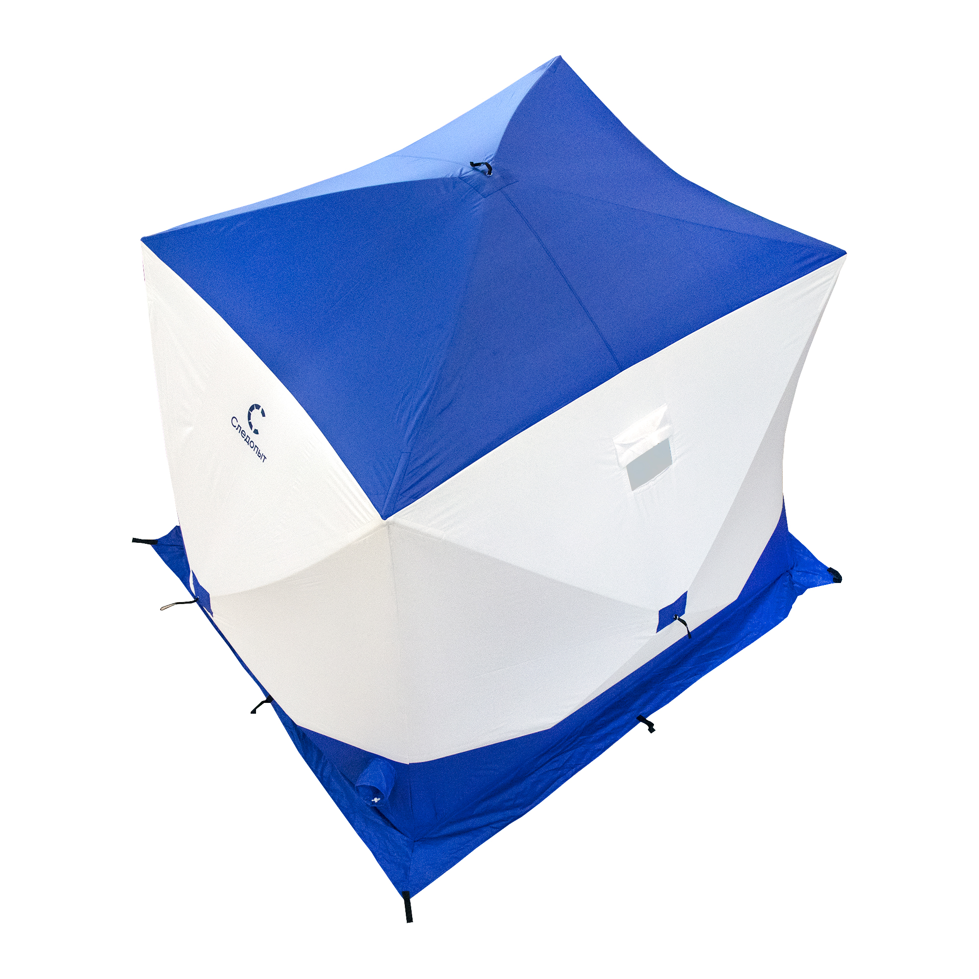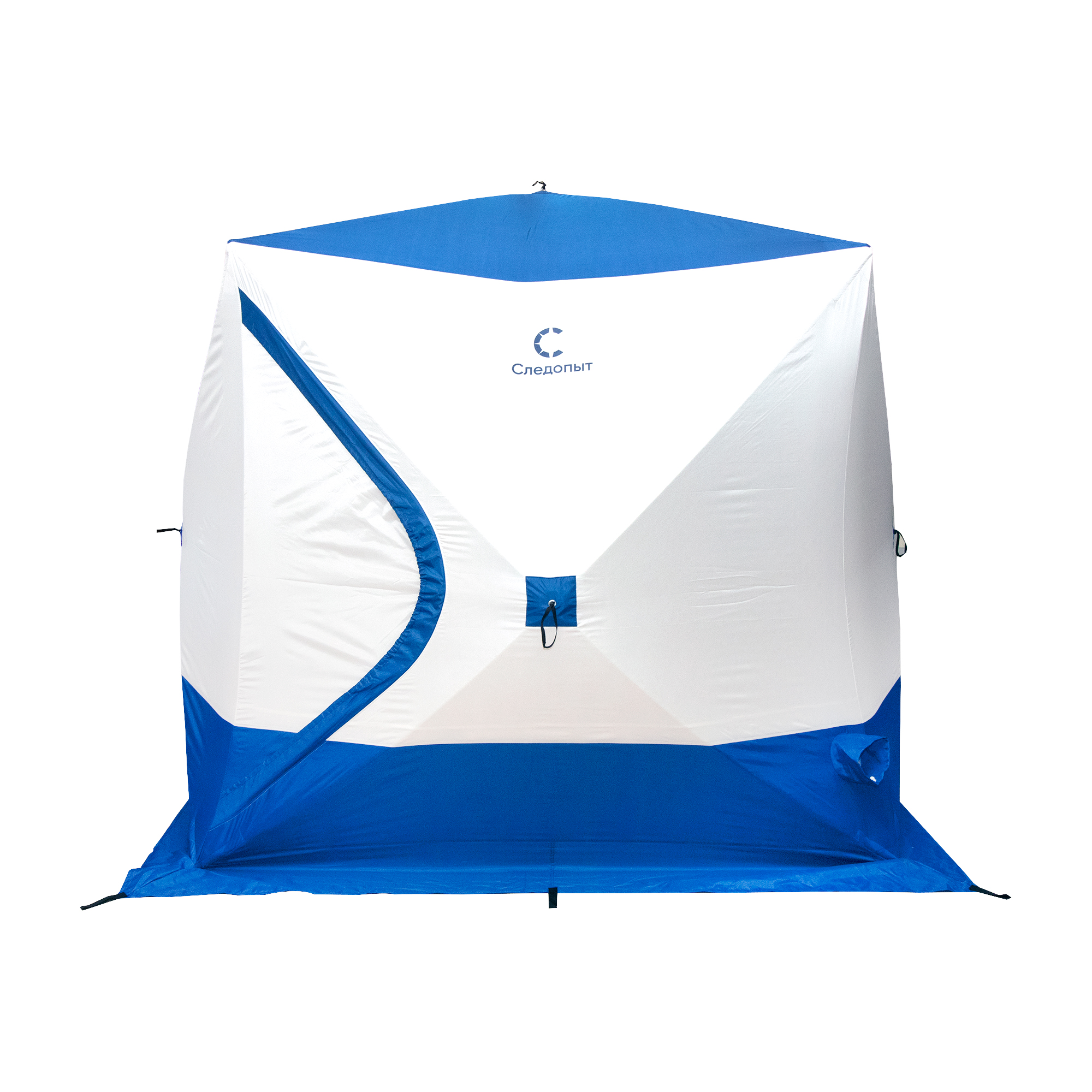 Палатка зимняя куб СЛЕДОПЫТ, 2,15х2,15 м, S по полу 4,6 кв.м, 3 слоя, цвет синий/белый