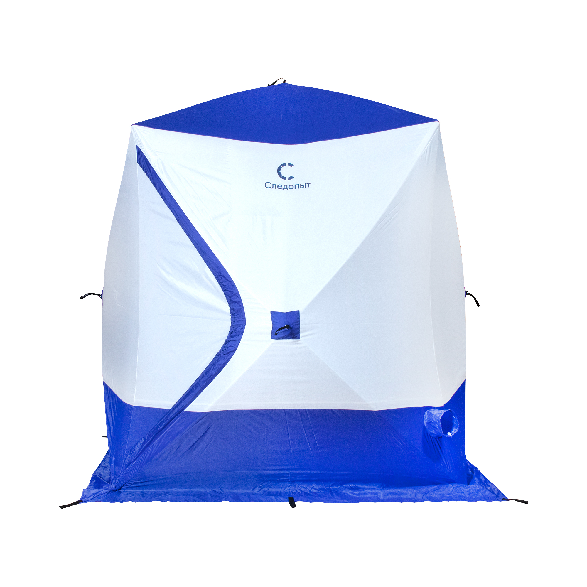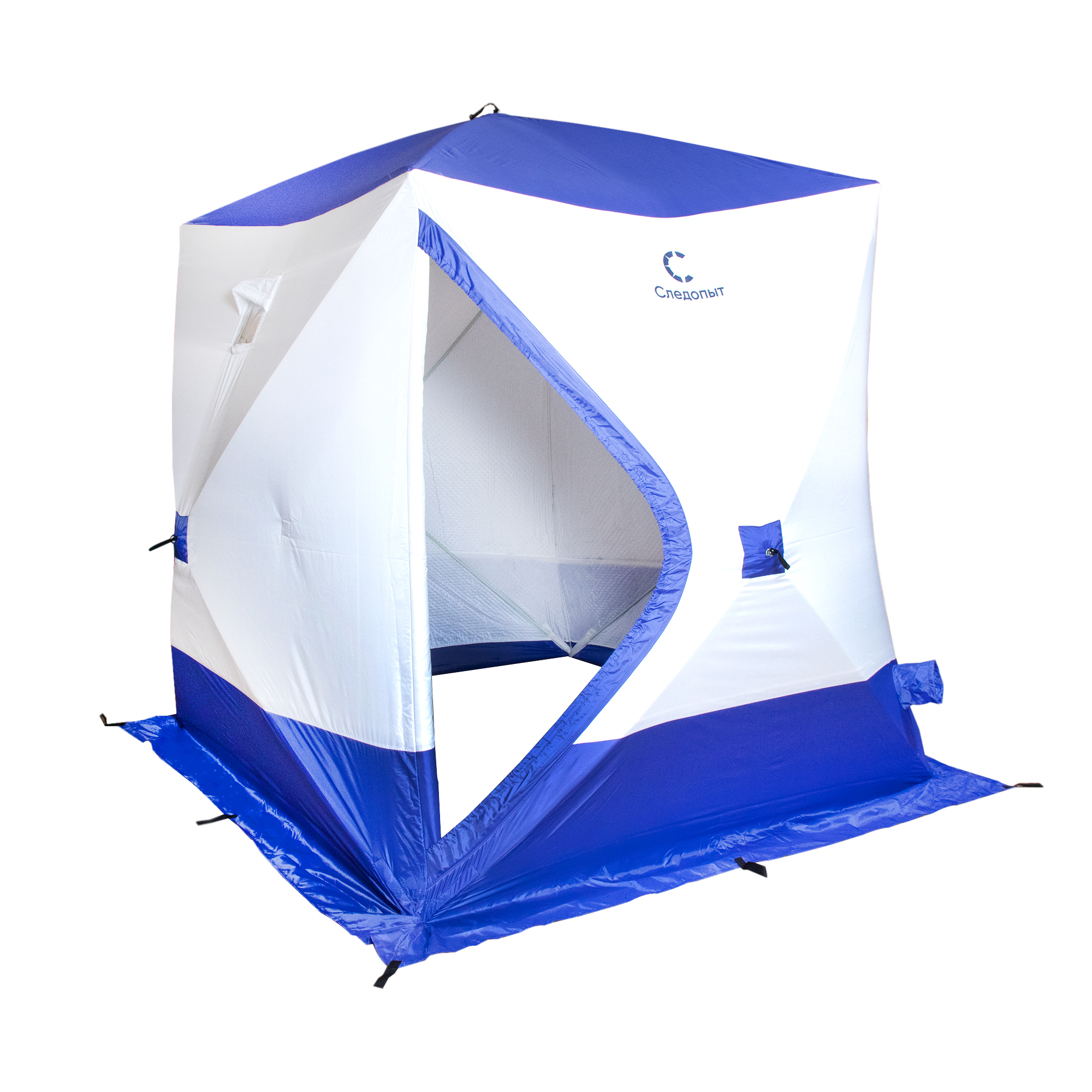 Палатка зимняя куб СЛЕДОПЫТ Long 2,15х1,8 м, S по полу 3,8 кв.м, 3 слоя, цвет синий/белый