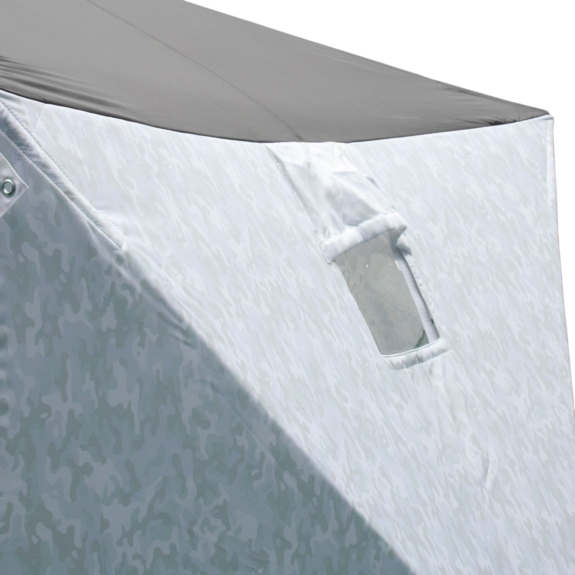 Палатка зимняя куб СЛЕДОПЫТ Premium 1,8х1,8 м, S по полу 3,2 кв.м, 3 слоя, цвет Arctic Camo/серый