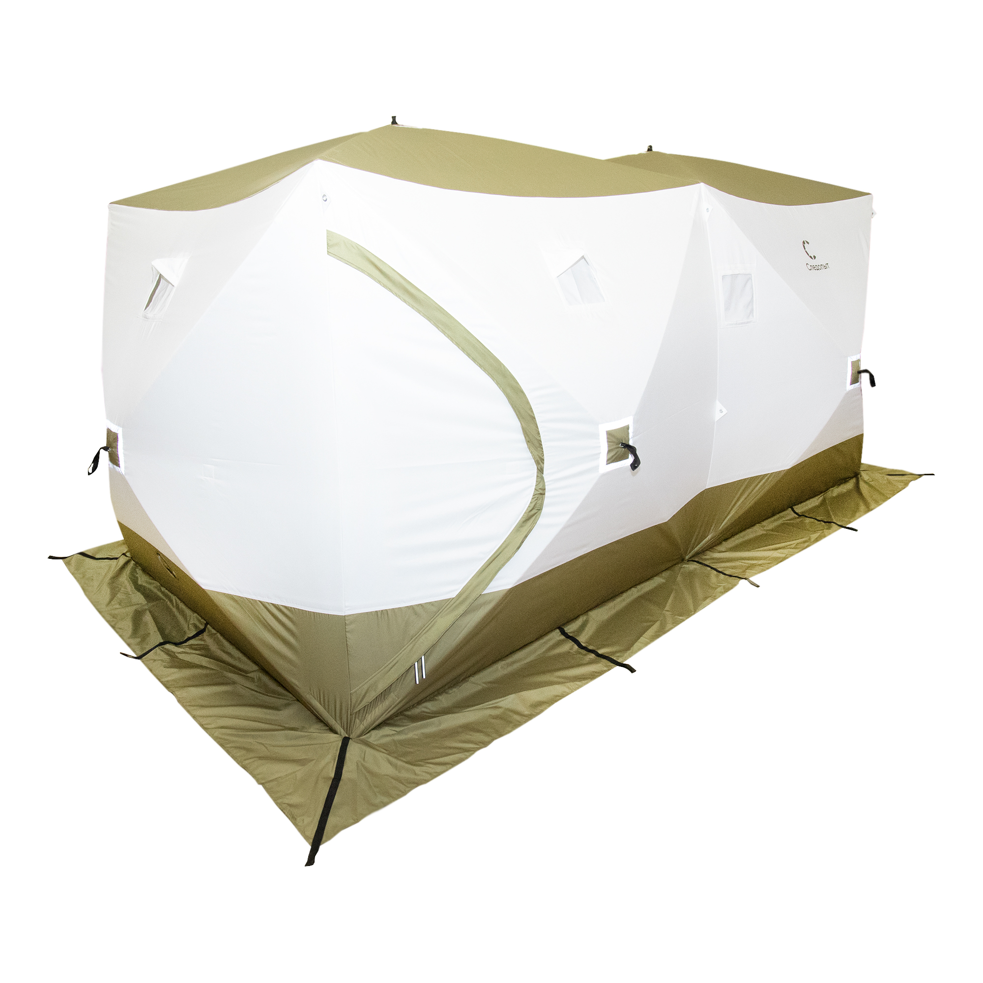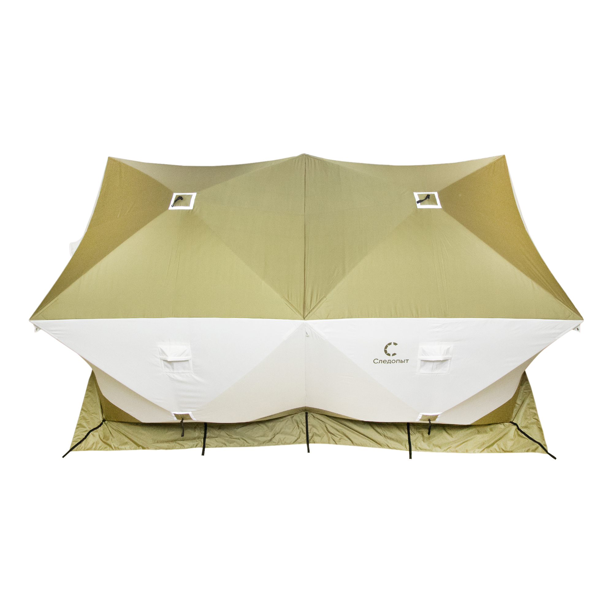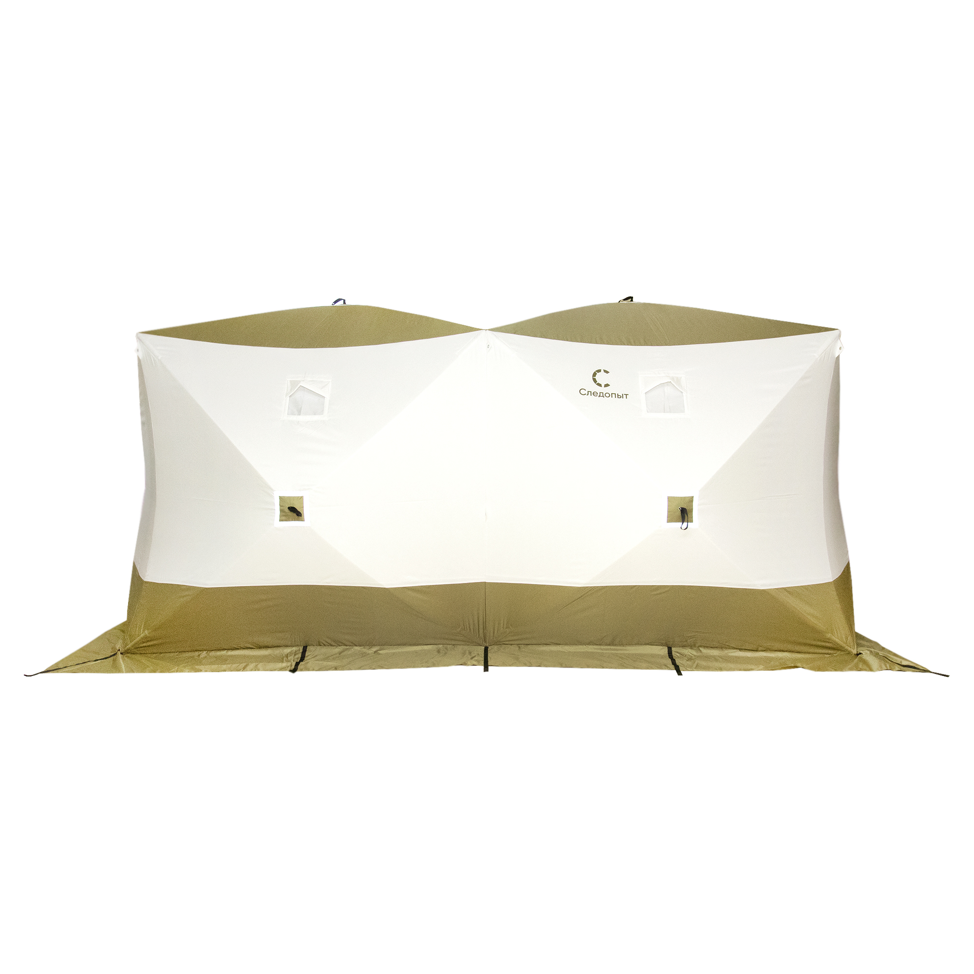 Палатка зимняя куб СЛЕДОПЫТ Premium 4,2х2,1м, 2-х комнатная, S по полу 8,8 кв.м, 3 слоя, цвет оливковый/белый
