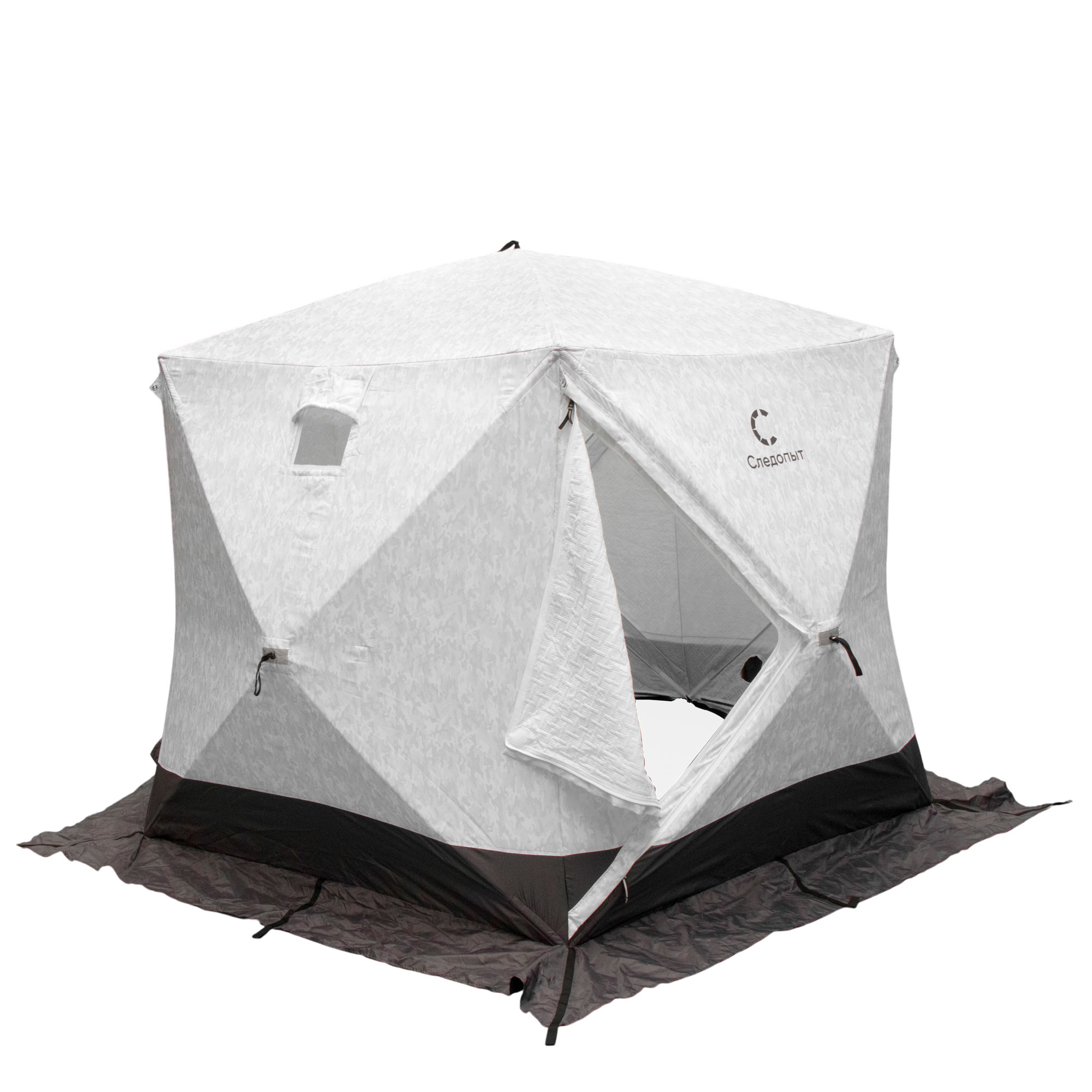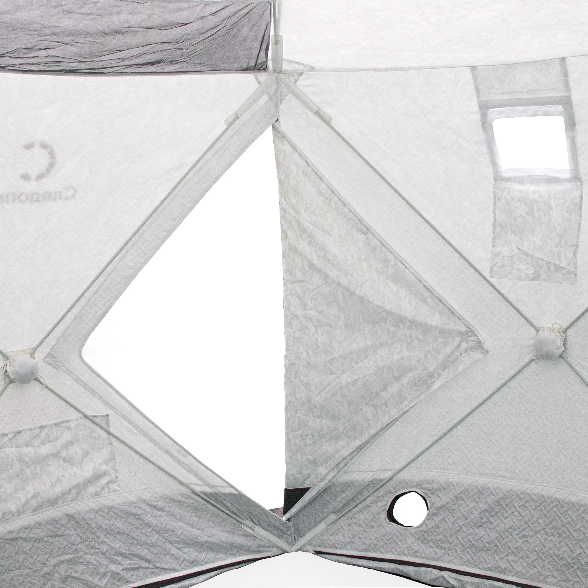 Палатка зимняя СЛЕДОПЫТ Premium 5 стен, 2,8х2,9м, h-2,05м, S по полу 5,6кв.м, 3 слоя, цвет Arctic Camo/Серый