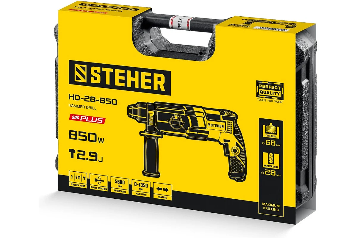 Перфоратор STEHER 28 мм, 850 Вт, SDS Plus (HD-28-850)