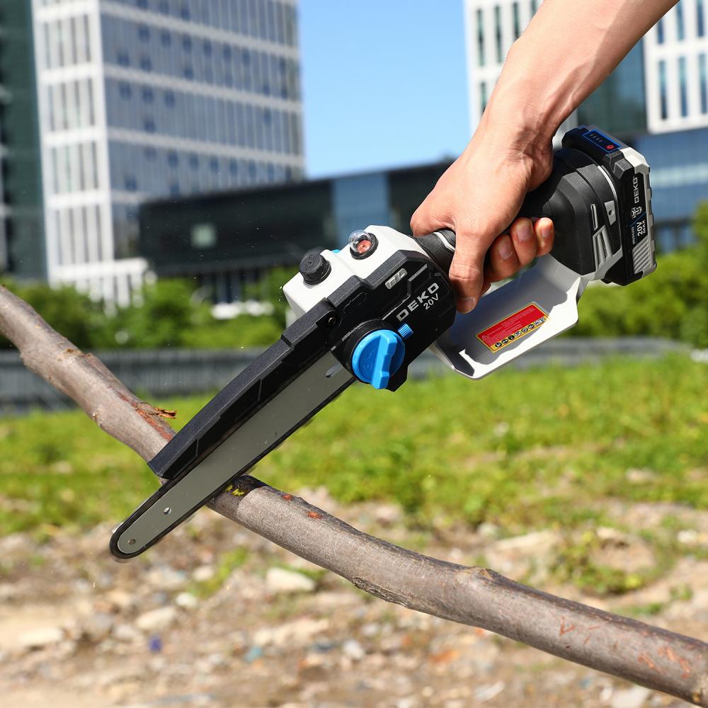 Аккумуляторная цепная пила DEKO DKCHS 20V — компактный и лёгкий инструмент с бесщёточным двигателем, предназначенный для точных и аккуратных пропилов в древесине и пластмассе. Идеально подходит для работы в саду, на даче или в мастерской, особенно при обрезке тонких веток, распиловке реек, брусков и других задач, где важны манёвренность и контроль.