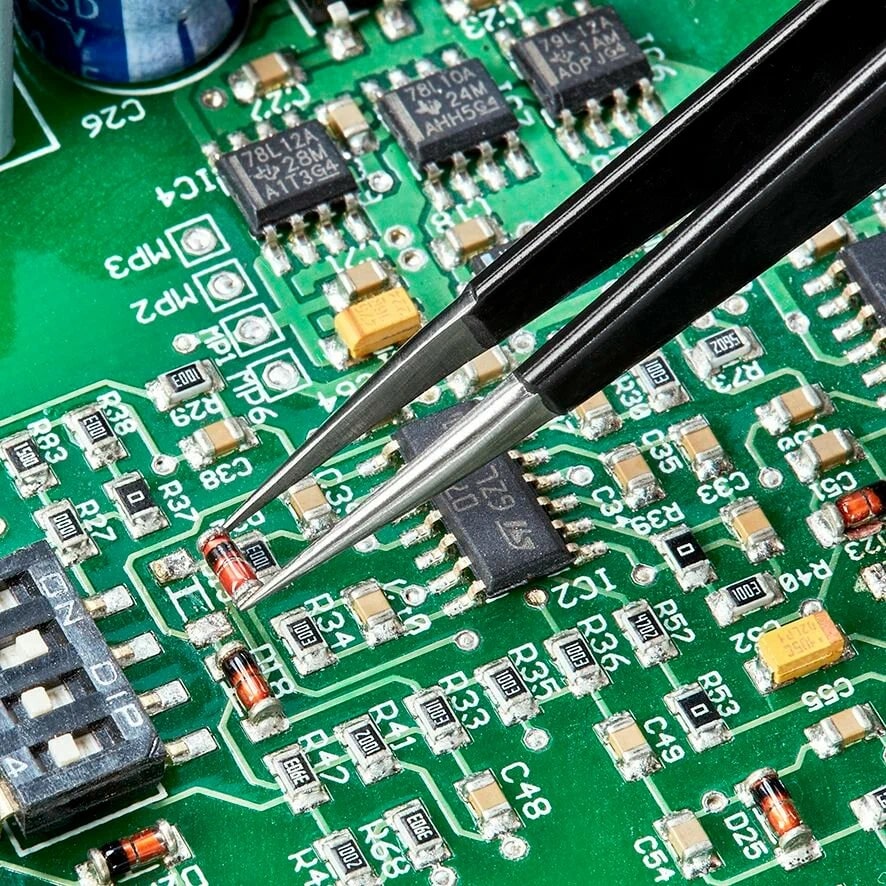 Безопасная работа с электронными компонентами в прецизионных областях применения: пинцет контролируемым образом компенсирует разность потенциалов между оператором и компонентом