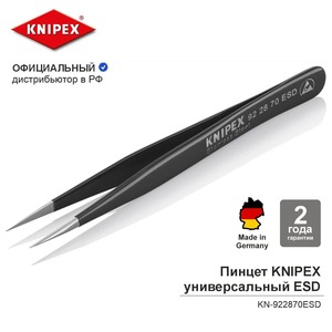 Пинцет универсальный Knipex ESD, нерж, 110 мм, гладкие прямые игловидные губки