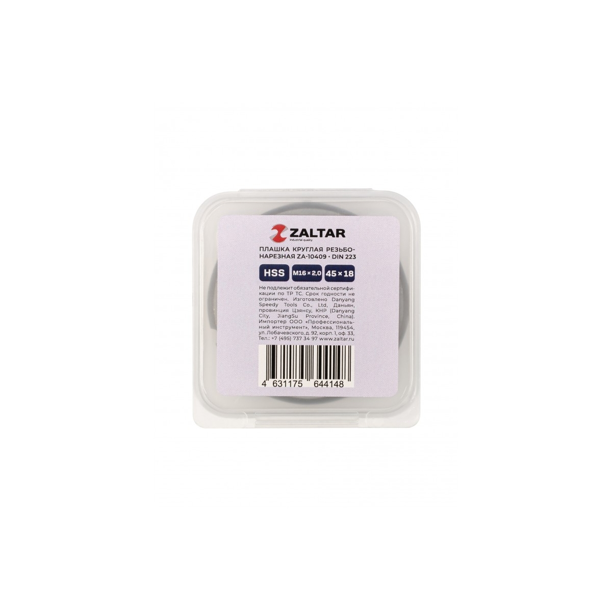 Плашка круглая резьбонарезная ZALTAR HSS, DIN 223 B (DIN EN 22568), M16 x 2.0, 45 x 18