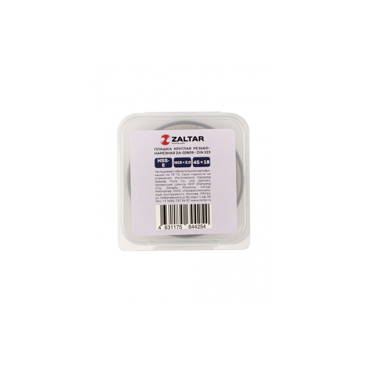Плашка круглая резьбонарезная ZALTAR HSS-E, DIN 223 B (DIN EN 22568), M16 x 2.0, 45 x 18