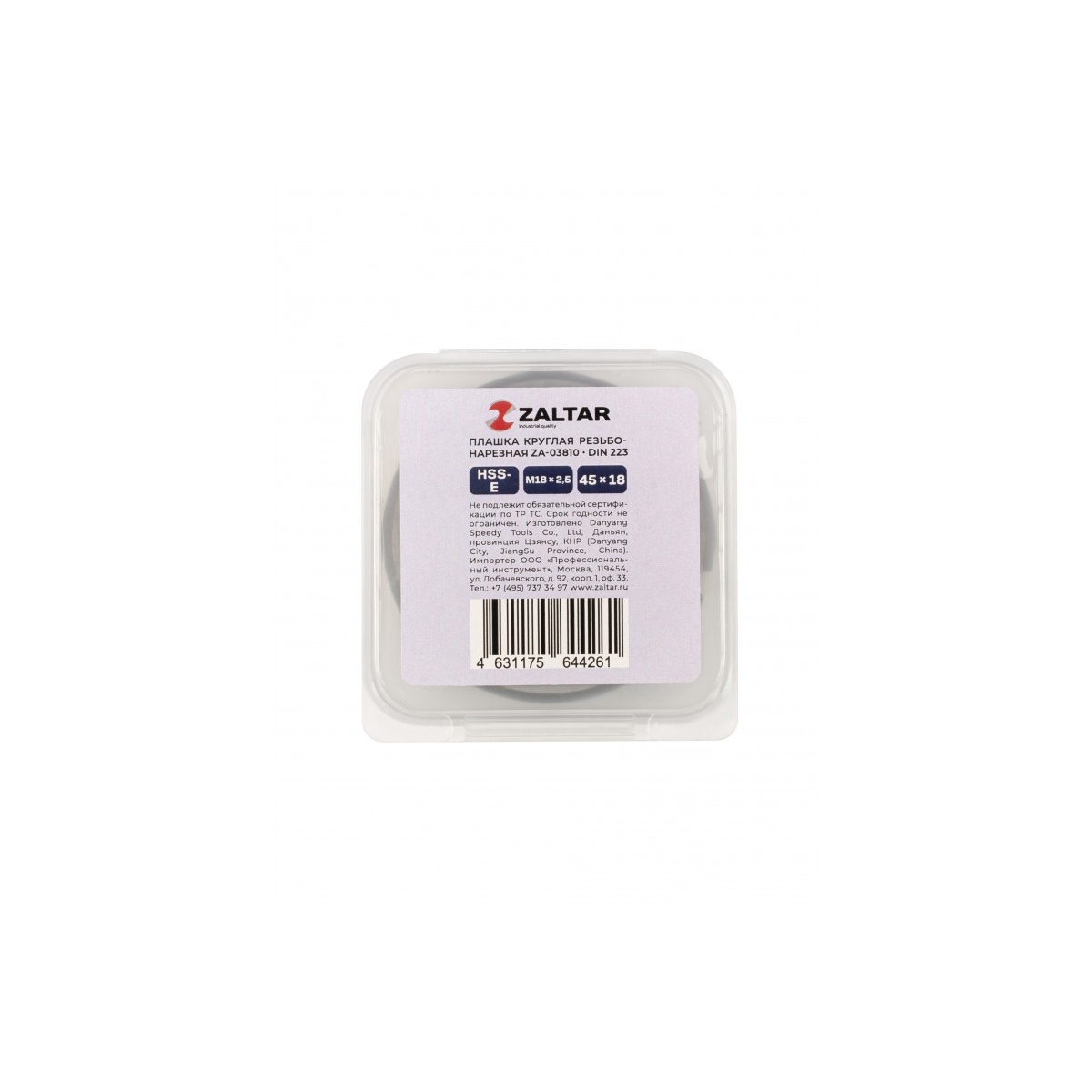 Плашка круглая резьбонарезная ZALTAR HSS-E, DIN 223 B (DIN EN 22568), M18 x 2.5, 45 x 18