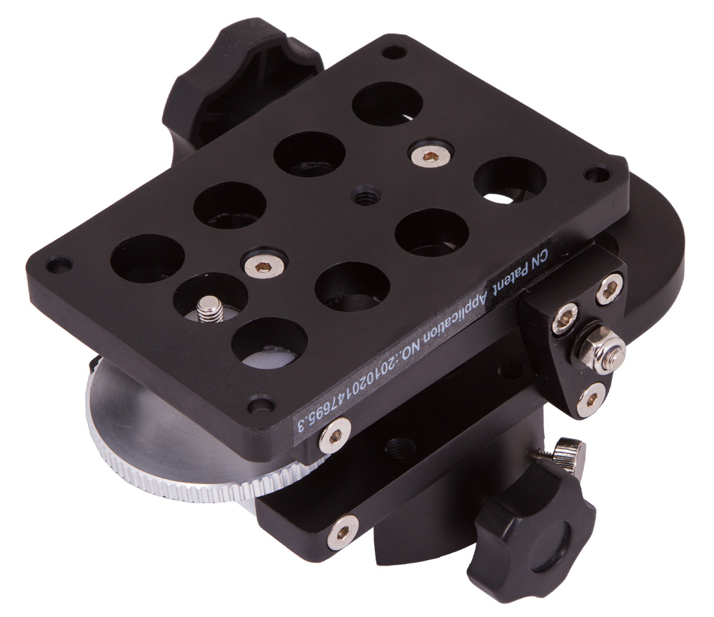 Крепежная площадка Sky-Watcher также подходит для установки цифровой камеры на оптическую трубу – в этом случае гидирующую функцию выполняет сам телескоп. Глядя в телескоп, астрофотограф выбирает объект для съемки. Микрометрические винты позволяют точно направить объектив камеры в нужном направлении.