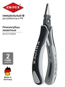 Плоскогубцы захватные прецизионные KNIPEX для электроники ESD , плоские широкие губки, 130 мм, 2-комп антистатические ручки