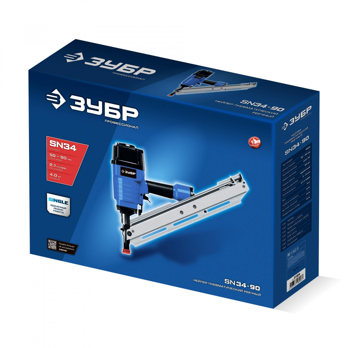 Пневматический нейлер для реечных гвоздей ЗУБР SN34-90, SN34/D34 (50-90 мм), Профессионал (31924)