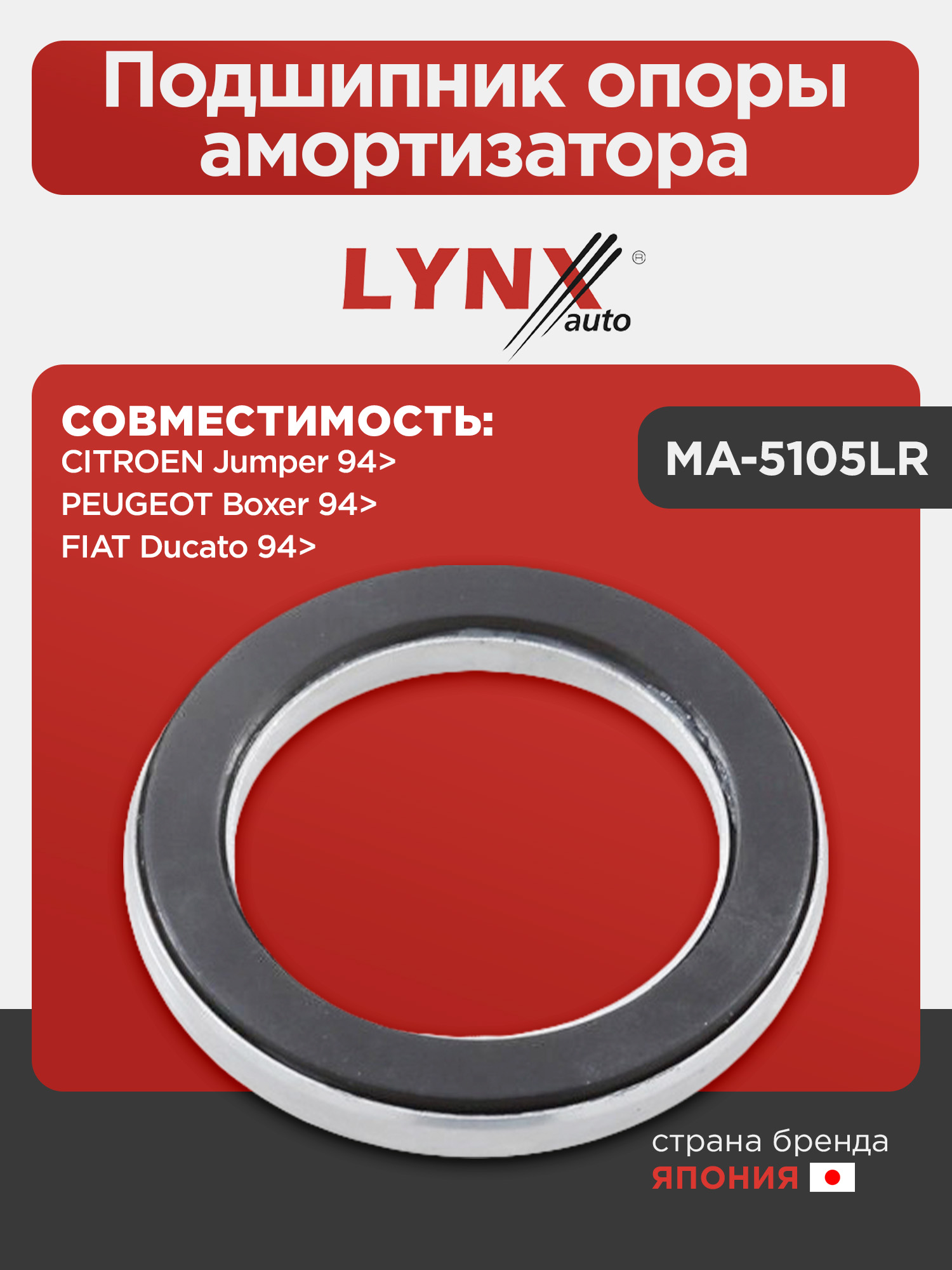Подшипник опоры амортизатора LYNXauto MA-5105LR. Для: CITROEN Ситроен Jumper(Джампер) 94>, FIAT ФИАТ Ducato(Дукато) 94>, PEUGEOT Пежо Boxer 94>