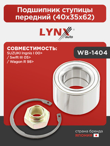 Подшипник ступицы передний (40x35x62) LYNXauto WB-1404. Для: SUZUKI Ingnis I 00> / Swift III 05> / Wagon R 98>