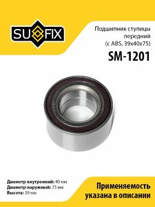 Подшипник ступицы передний (с ABS, 39x40x75) SUFIX SM-1201