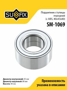 Подшипник ступицы передний (с ABS, 40x43x80) SUFIX SM-1069