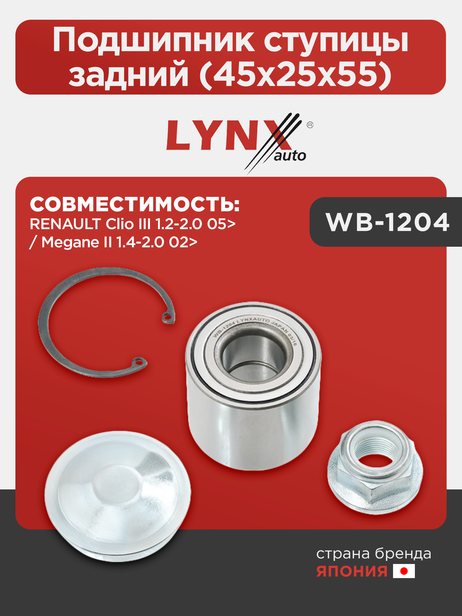Подшипник ступицы задний (45x25x55) LYNXauto WB-1204. Для: RENAULT Рено Clio(Клио) III 1.2-2.0 05> / Megane(Меган) II 1.4-2.0 02>