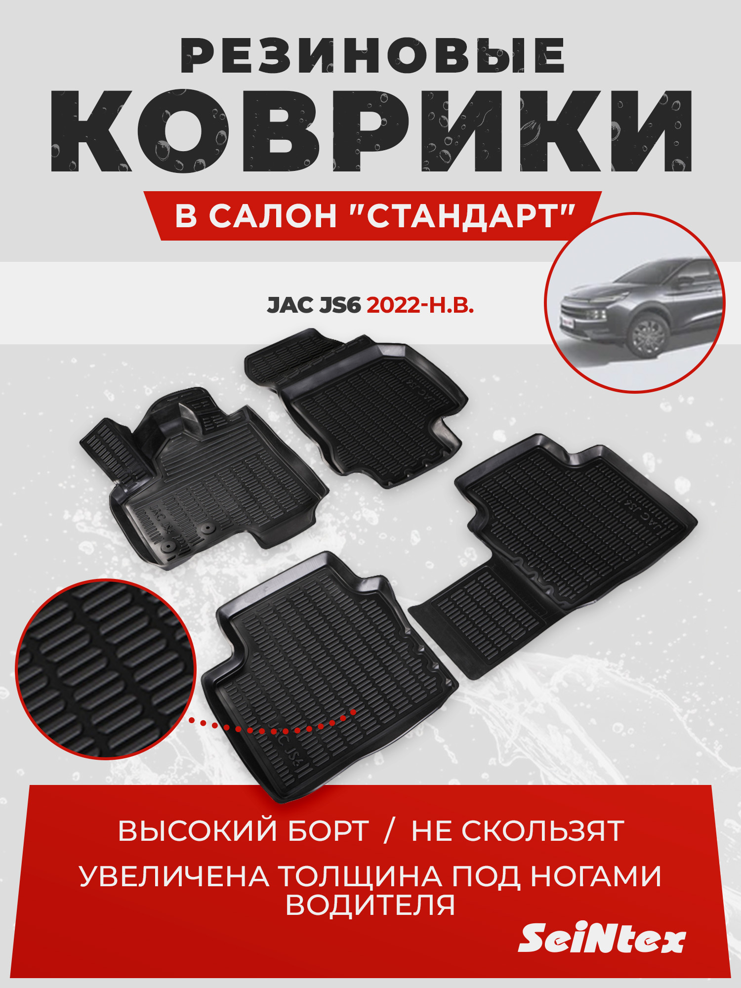 Полиуретановые коврики салона Seintex для JAC JS6 2022-н.в. (черный, 98645)
