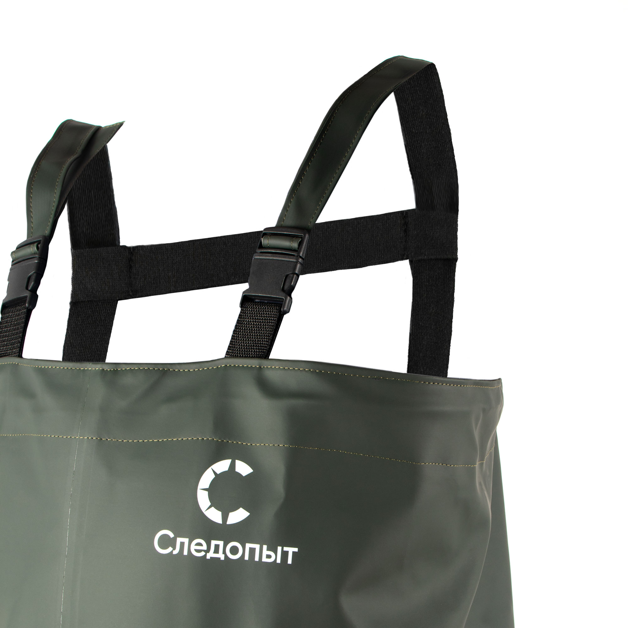 Полукомбинезоны «Следопыт» изготовлены из водонепроницаемой ткани с ПВХ-покрытием. Комбинезон оснащен ПВХ сапогами с толстой подошвой и глубоким рисунком протектора. Комбинезон имеет эластичные шлейки на застежках, которые позволяют регулировать изделие по росту. Клинообразная вставка в паховой области позволяет не сковывать движения при приседаниях и высоких подъемах ног. В области груди предусмотрен наружный и внутренний карманы для небольших аксессуаров.