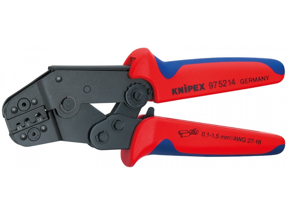 Пресс-клещи KNIPEX 4 гнезда, штекеры открытые неизолированные 2.8/4.8 мм, 0.10-1.5 мм², длина 195 мм