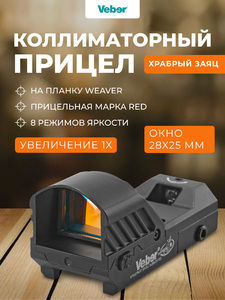 Коллиматорный прицел Veber Храбрый Заяц 1x28x25 RD представляет собой прицел с красной точкой (зеркальный прицел) и увеличением 1,07х.