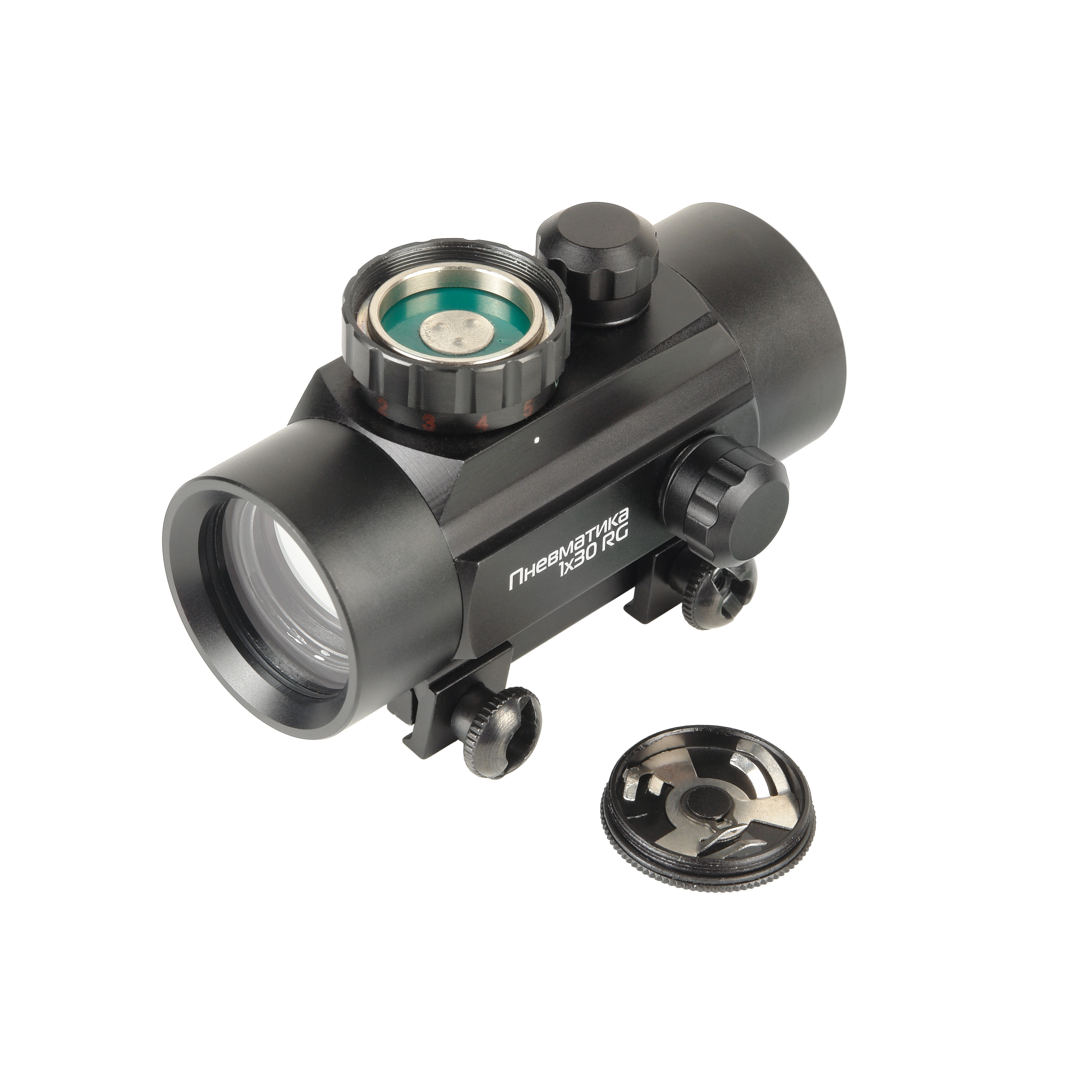 Veber Пневматика 1x30 RG – коллиматорный прицел закрытого типа с прицельной маркой в виде точки размером 4 MOA (регулируемая подсветка красного или зеленого цвета).