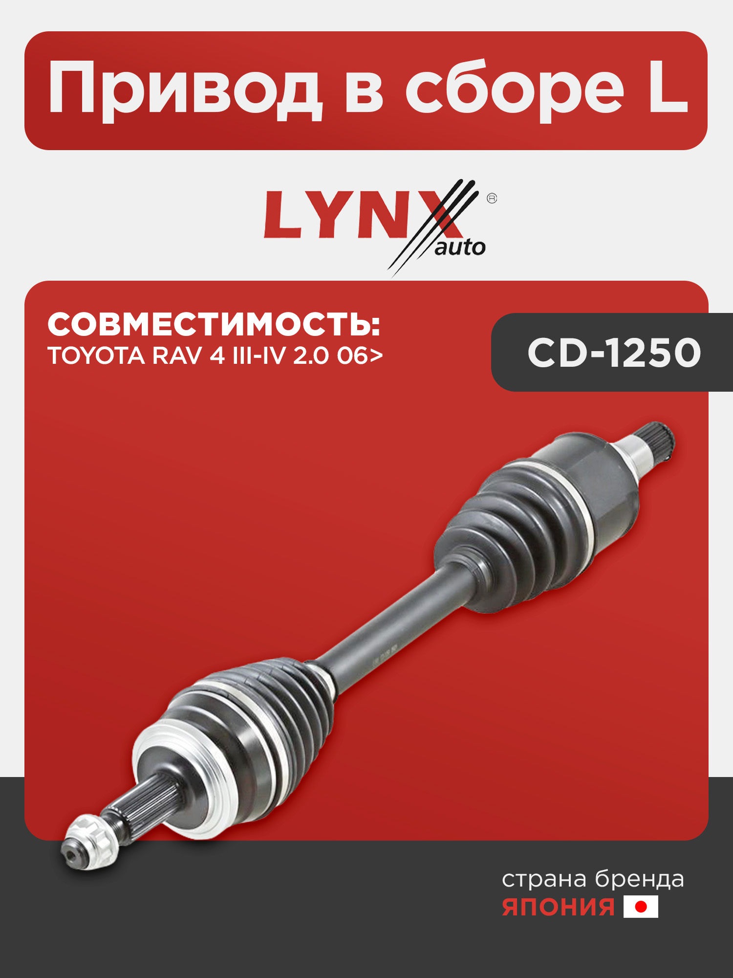 Привод в сборе L LYNXauto CD-1250. Для: TOYOTA Тойота RAV(РАВ) 4 III-IV 2.0 06>