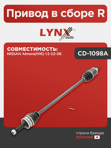Привод в сборе R LYNXauto CD-1098A. Для: NISSAN НИССАН Almera(Алмера)(N16) 1.5 02-06