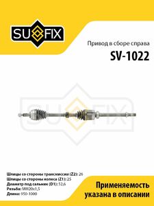 Привод в сборе R SUFIX SV-1022. Применение: RENAULT Duster 1.6 MT 10>.