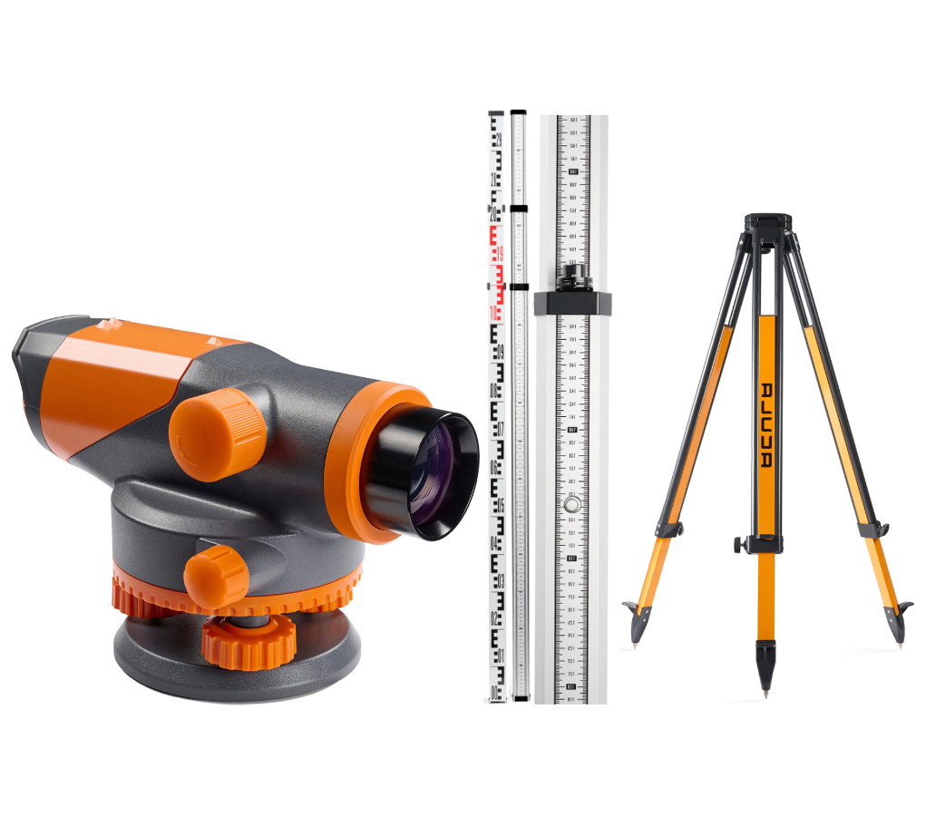 Профессиональный комплект ACULA Специальный высокоточный оптический нивелир с усиленной защитой от ударов, вибраций, воды и пыли NIVEX R-38 (объектив 40 мм; IPX6) + Геодезический штатив Geo 12-S (высота 99-173 см) + Нивелирная рейка TLS 3 (3м)