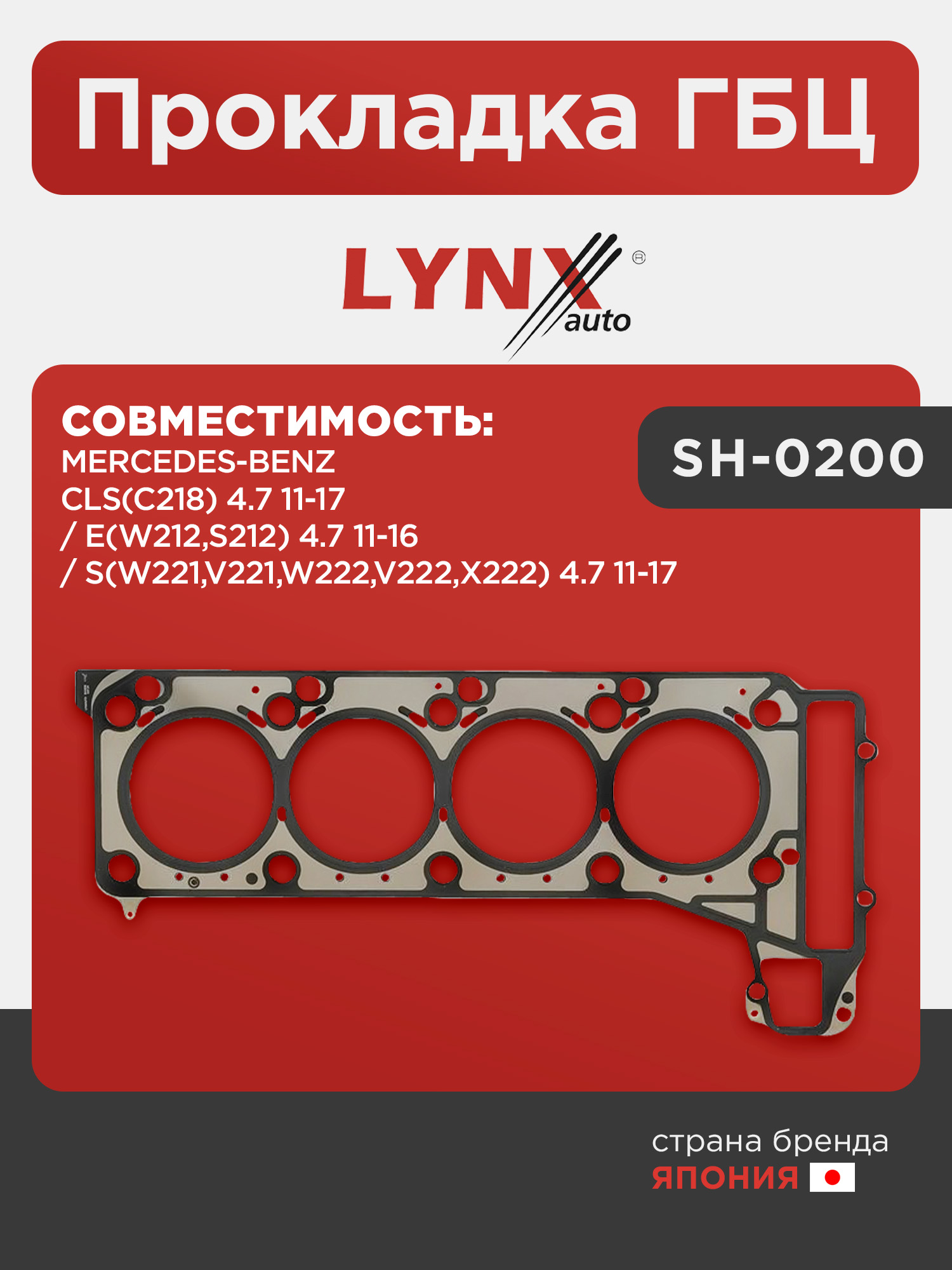 Прокладка ГБЦ LYNXauto SH-0200. Для MERCEDES-BENZ МЕРСЕДЕС-БЕНС Cls(C218) 4.7 11-17/E(W212,S212) 4.7 11-16/S(W221,V221,W222,V222,X222) 4.7 11-17