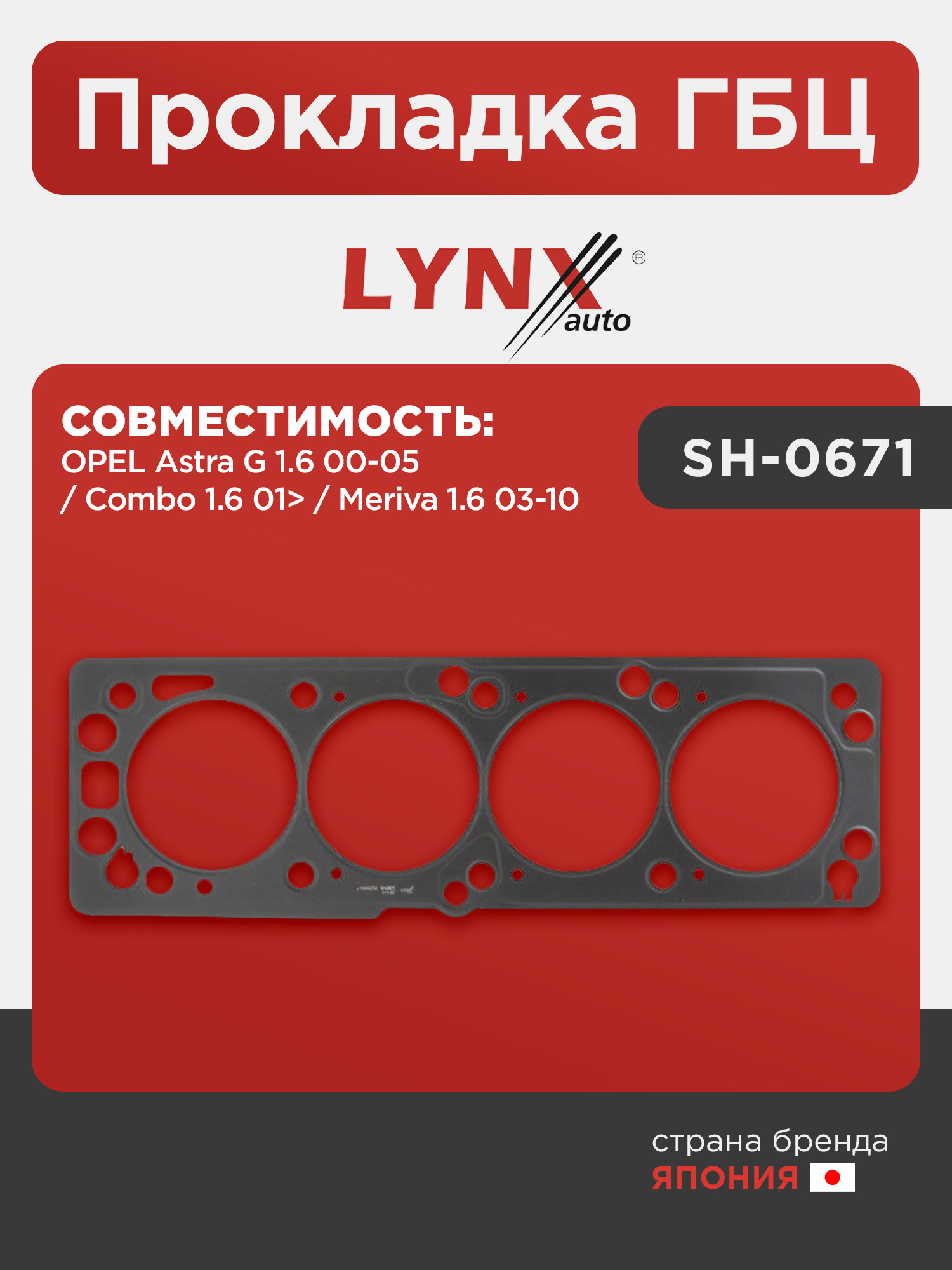 Прокладка ГБЦ LYNXauto SH-0671. Для: OPEL Опель Astra(Астра) G 1.6 00-05 / Combo 1.6 01> / Meriva 1.6 03-10