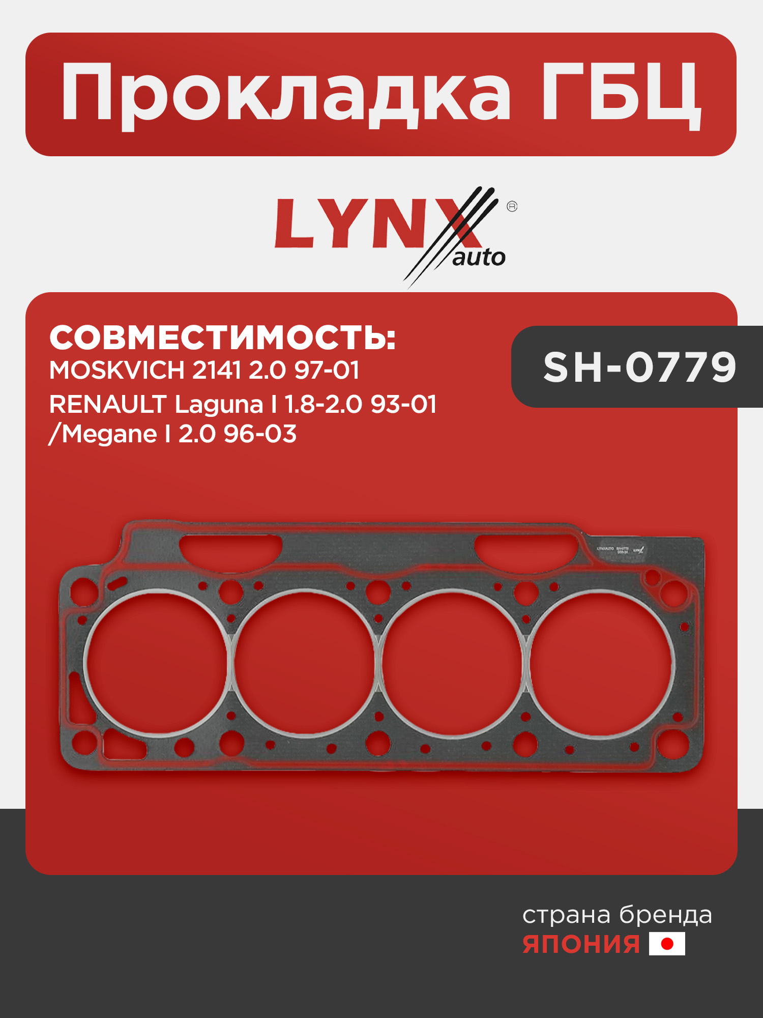 Прокладка ГБЦ LYNXauto SH-0779. Для MOSKVICH 2141 2.0 97-01, RENAULT Рено Laguna I 1.8-2.0 93-01/Megane(Меган) I 2.0 96-03