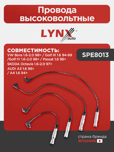 Провода высоковольтные LYNXauto SPE8013. Для: Audi, Ауди A3 1.6 96> / A4 1.6 94>, Skoda, Шкода, Octavia(Октавия) 1.6-2.0 97>, VW, Фольксваген, Bora(Бора) 1.6-2.0 98> / Golf(Гольф) III 1.6 94-99.