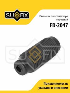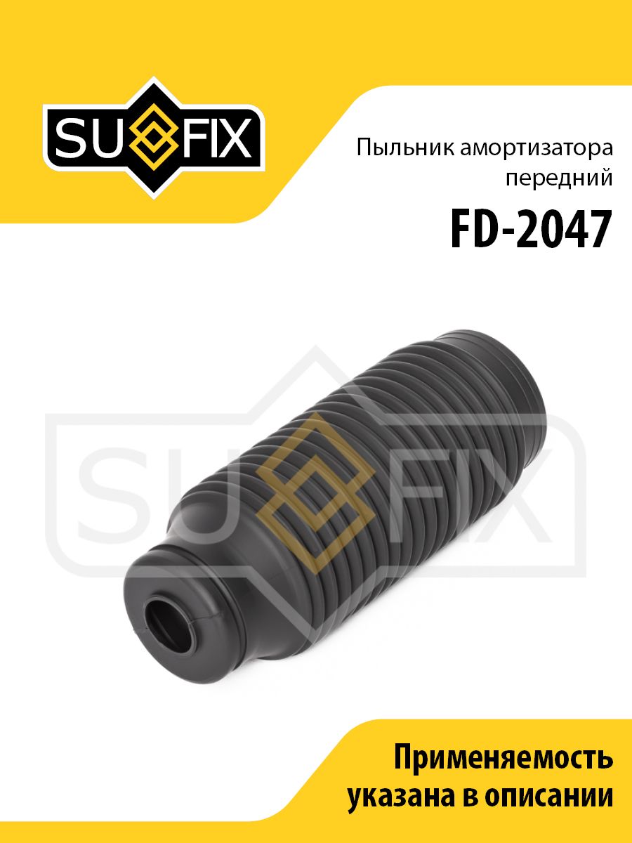 Пыльник амортизатора передний SUFIX FD-2047. Применение: HYUNDAI Accent(LC) 00> / Elantra(XD/HD/MD) 00> / Solaris I 10> / i30(FD) 07>, KIA Carens II-III 02> / Cerato/Spectra(LD/TD) 05> / Rio II 05>.
